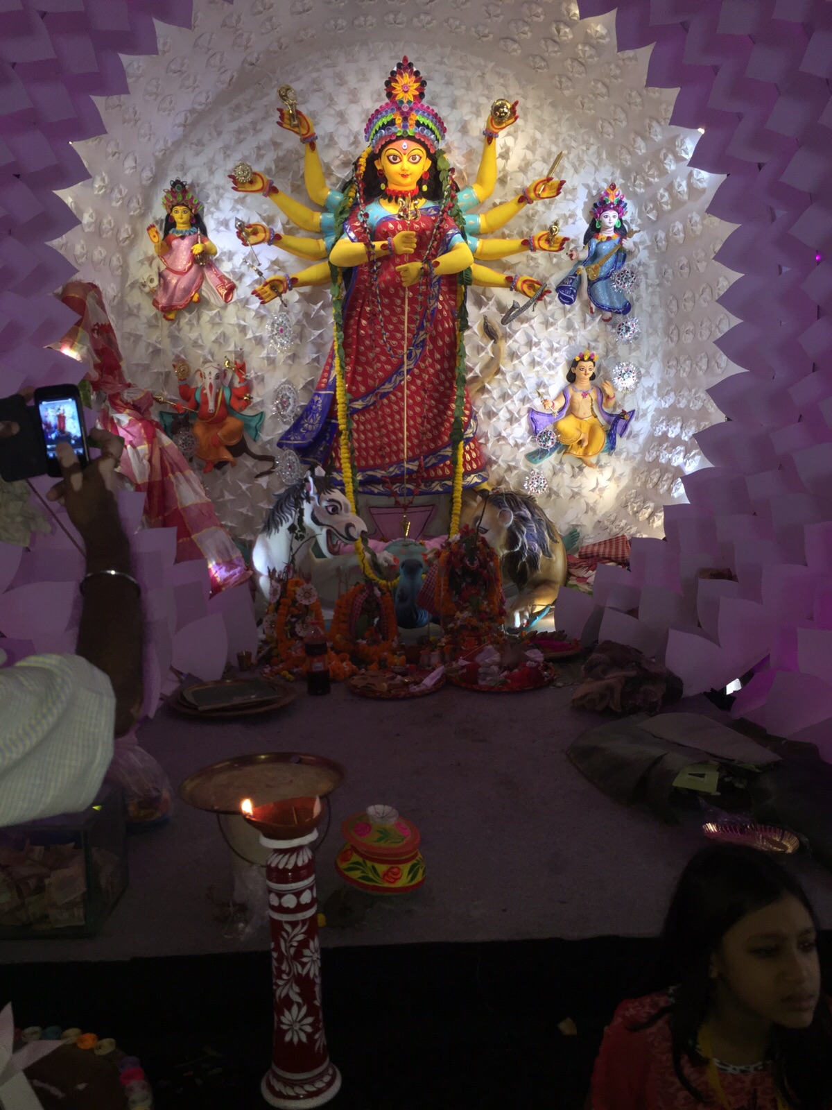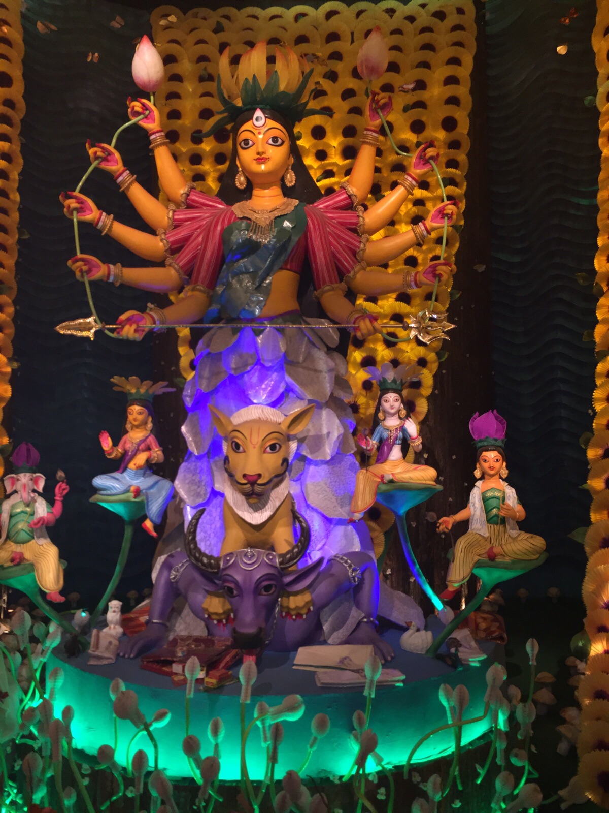 From a very young age, I have been a part of the bengali community and have been an active participant in the cultural programs. However, my favorite memory is not of the acute stage fright that I suffer from the public performances, but it is related to the pandal hopping that I used to indulge in with my family during the festive time. (Pandal is the podium where the idol is placed and worshiped). Since dad came down to Kolkata (previously, and preferably named as Calcutta), I decided to indulge myself by revisiting those memory, just for a day. Clearly, I went overboard!