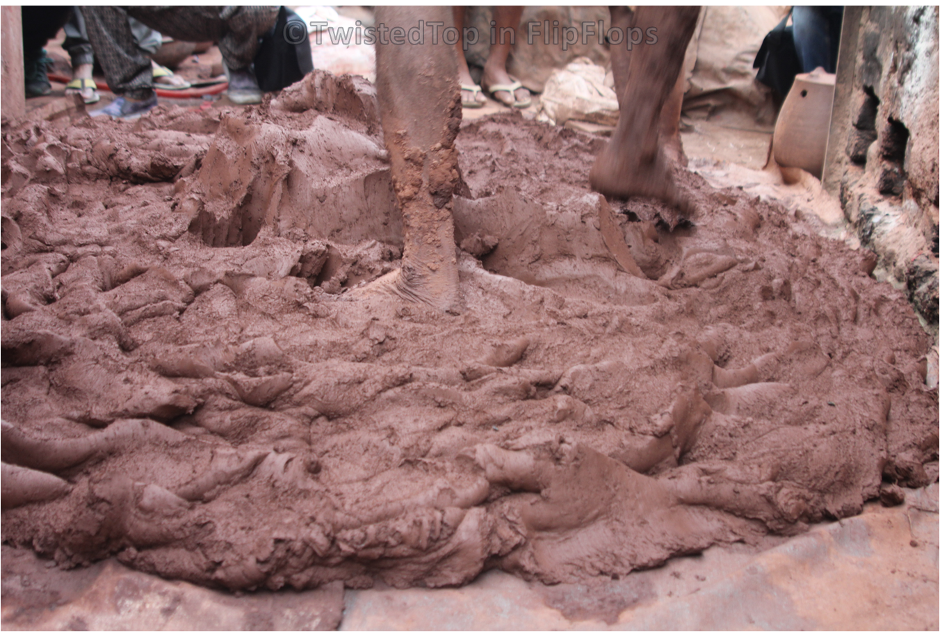 As you walk further down, you can actually appreciate each step involved in the process of pottery. First kneading of the clay is done with the feet.