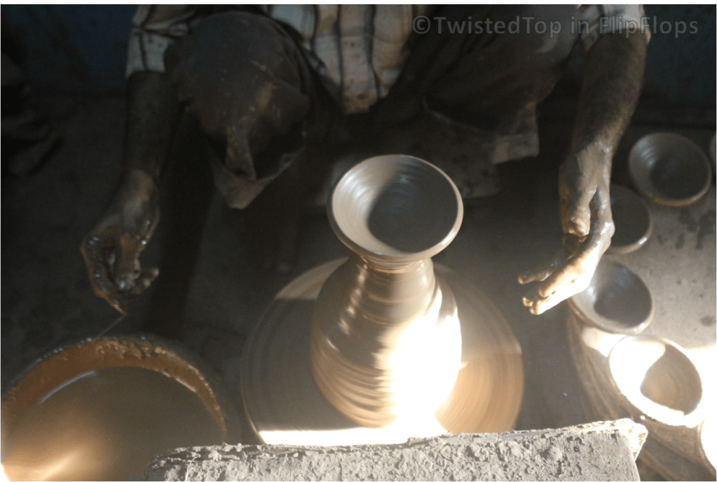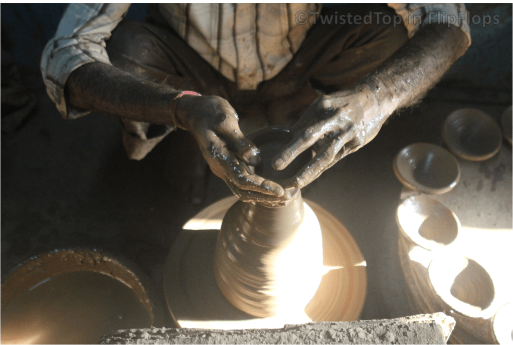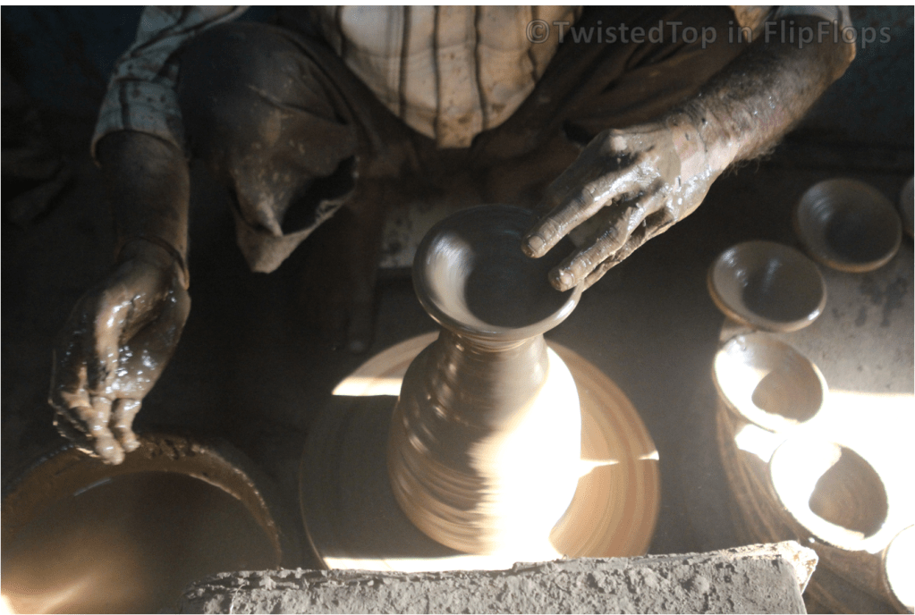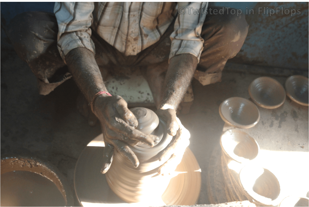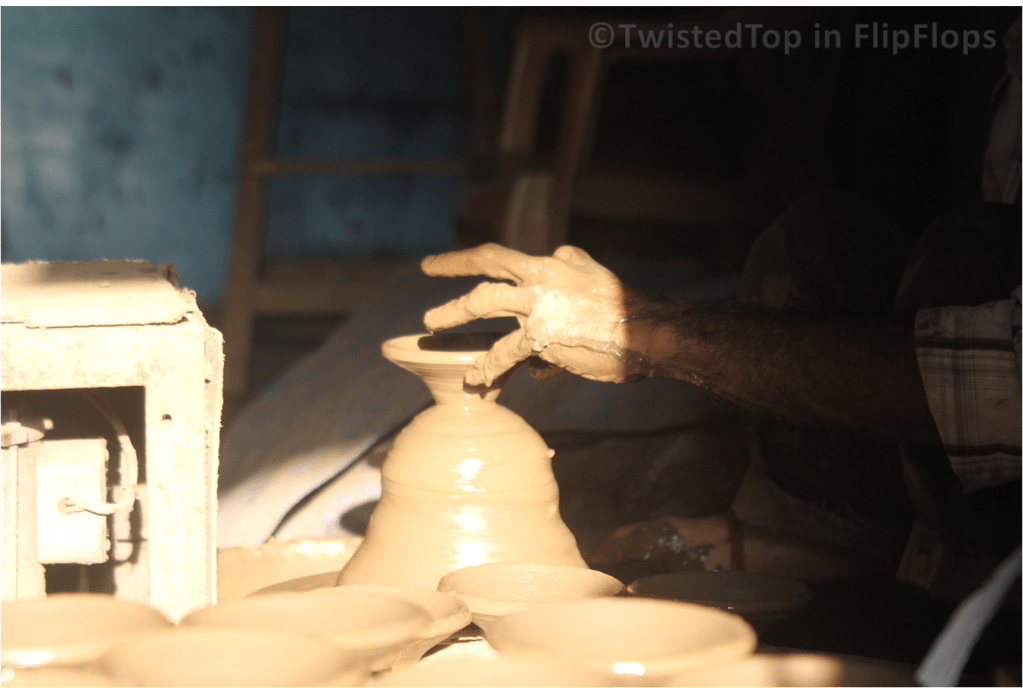 Each corner revealed a new section of pot and a potter busy making a piece of art. The nimble fingers and the dexterity of the hands at work definitely kept me captivated.