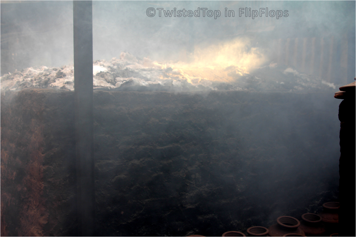 The temperature is then slowly build up from a minimum of 100 degrees up to 450-500 degrees. Once the wall of the kills are glowing hot, the pots are taken out. Only an experienced potter knows how to distinguish between his well-baked goods and the right amount of temperature that will be needed.