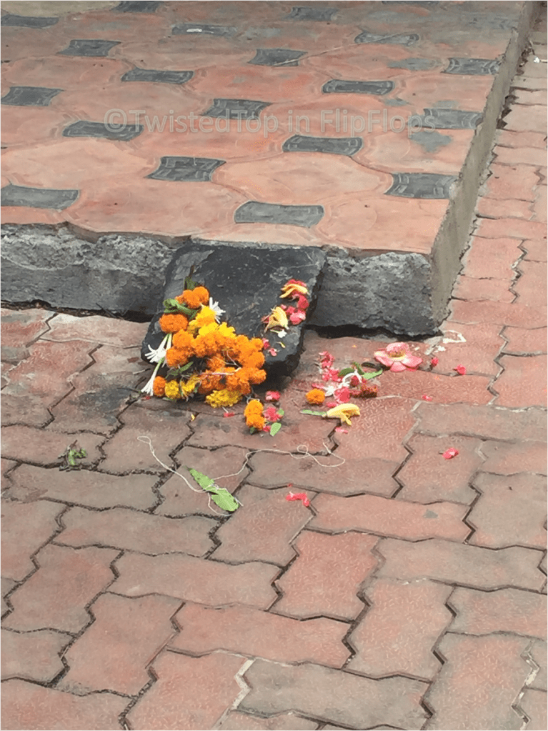 While the history of Lalbaugcha Raja (‘The King of Lalbaug’) can be traced through all the documented images, many people are unaware that the original representation of the wish-fulfilling God exists at the corner of the road in the form of a plain black stone. The stone stays in that place for all 354 days of the year, unadorned and simple, and yet still evokes the strength of faith and belief amidst the locals.