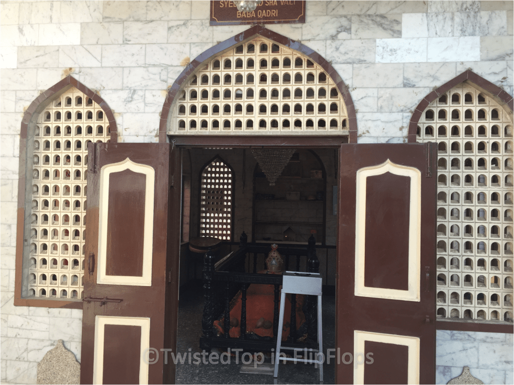 Located further between the meandering lanes, and surrounded by Hindu residential complexes on all sides, the 14th century Sayyed Hazrat Lal Shah Dargah or the Lal Shah Dargah is believed to be responsible for the name of the area ‘Lalbaug’. It is believed to be one of the oldest shrines of the city. Perhaps its the remodelling, but look at the beautiful Aegian color contrast.