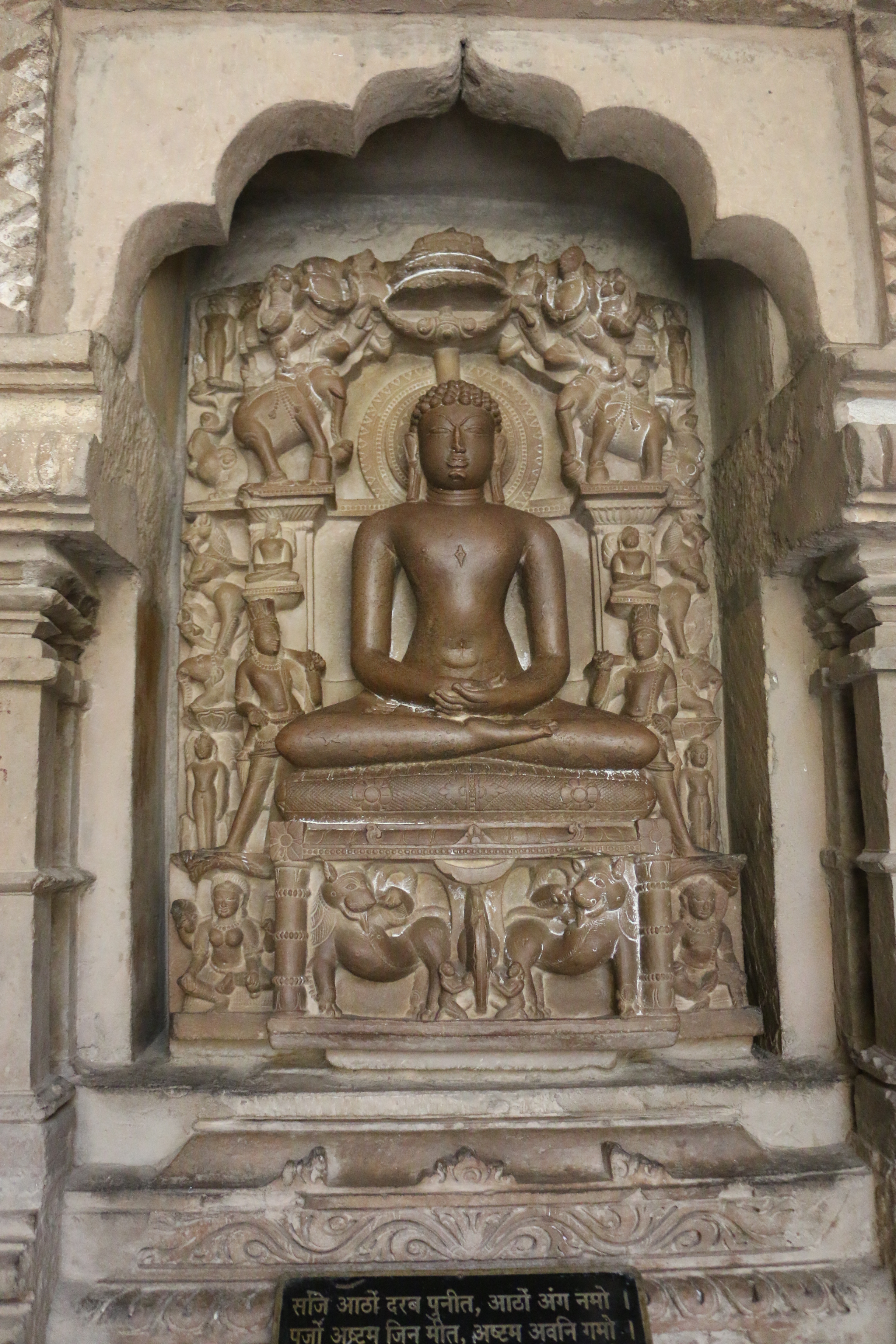 Adinath or “Lord of the Beginning” is portrayed by Jain legend as having lived many millions of years ago. He is the first of twenty four Tirthankaras (saviours) of Jainism. His full name, Rishabhanatha, comes from a series of 14 auspicious dreams that his mother had in which a bull (rishabha) appeared before his birth.