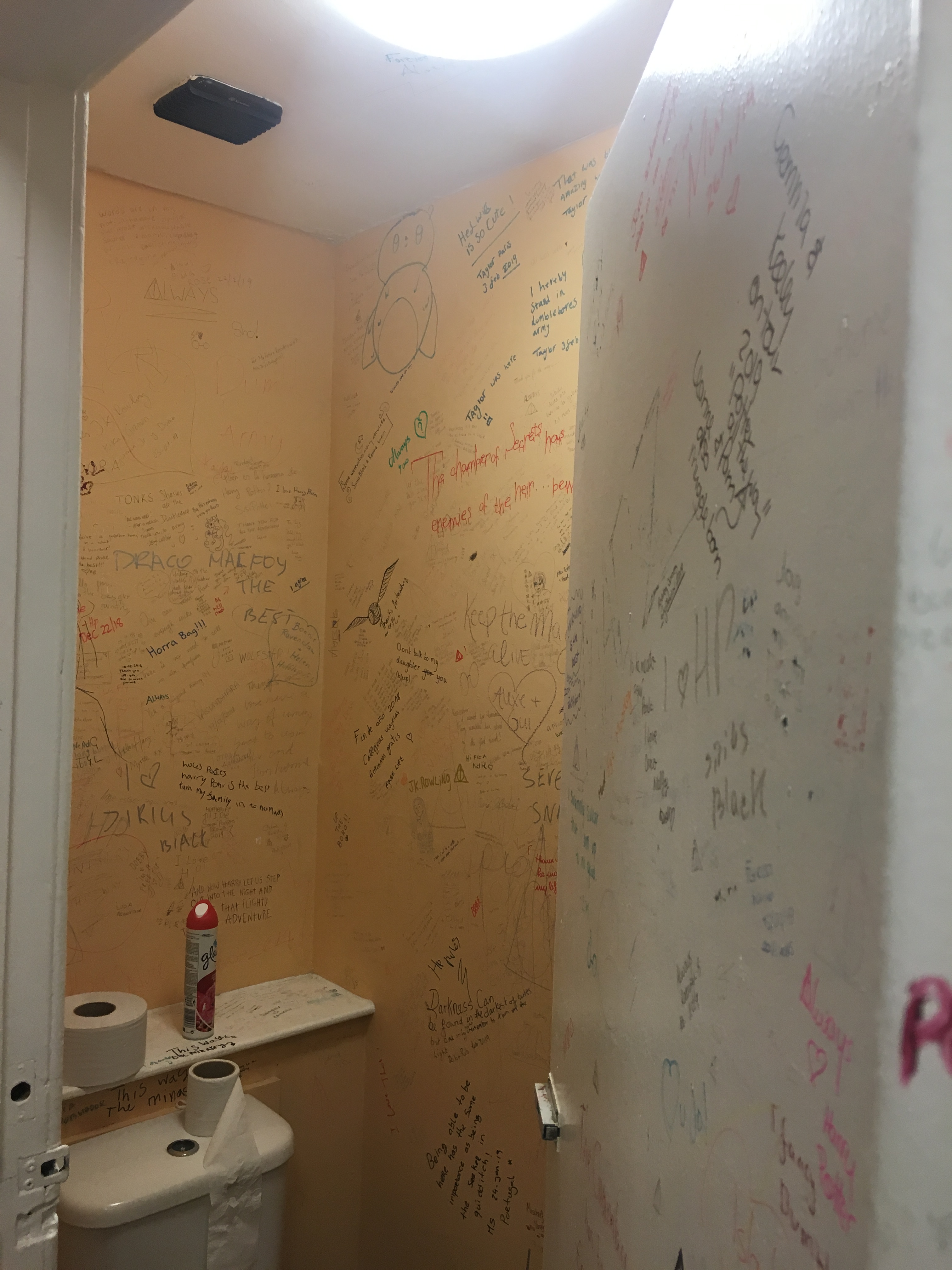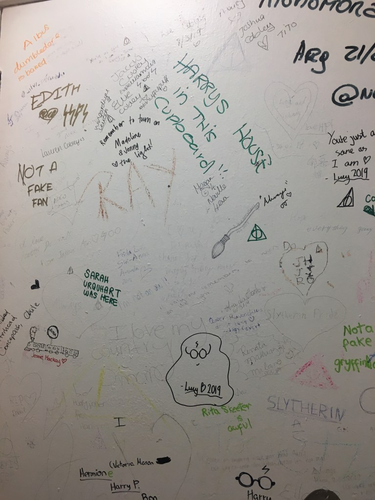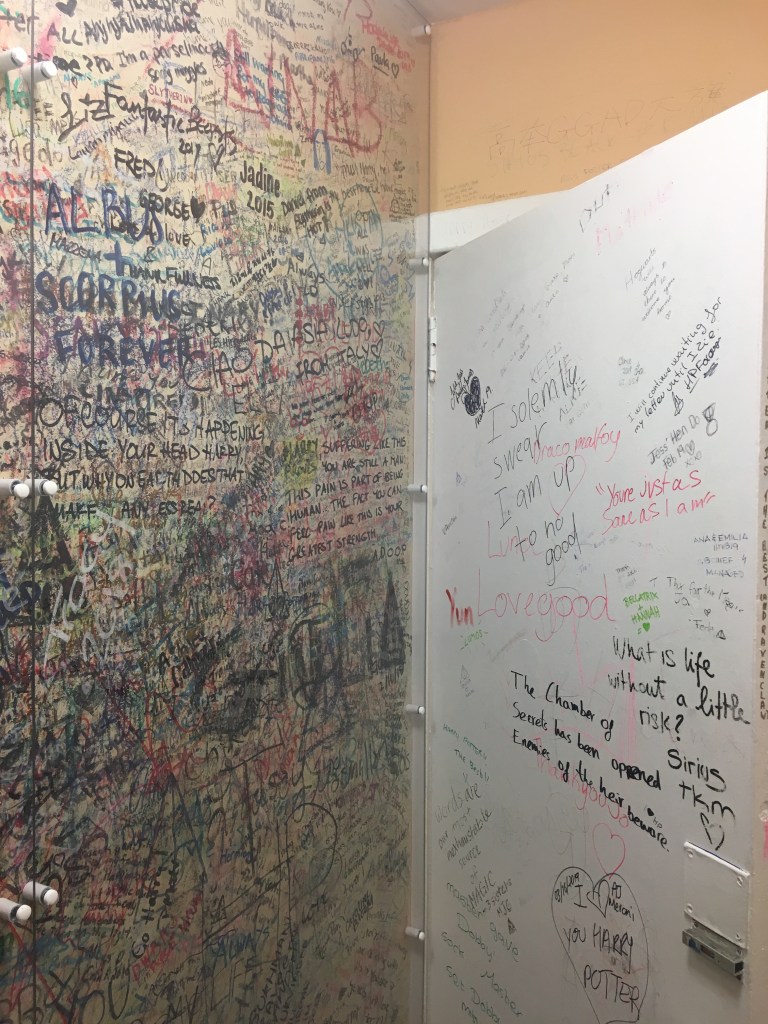 The second notable feature of the cafe is a credit to the fans. Ever since this little known nugget has been made public, the franchise fans have made it a point to showcase their love. And the place that they have chosen? Literally the holy grail – the washroom!! Every surface has been scribbled with “love notes”, and each one equally relatable to a fan standing there, soaking it all in and taking pictures. Apparently, the owners of the cafe had tried to erase this “desecration” numerous times before they finally gave up!