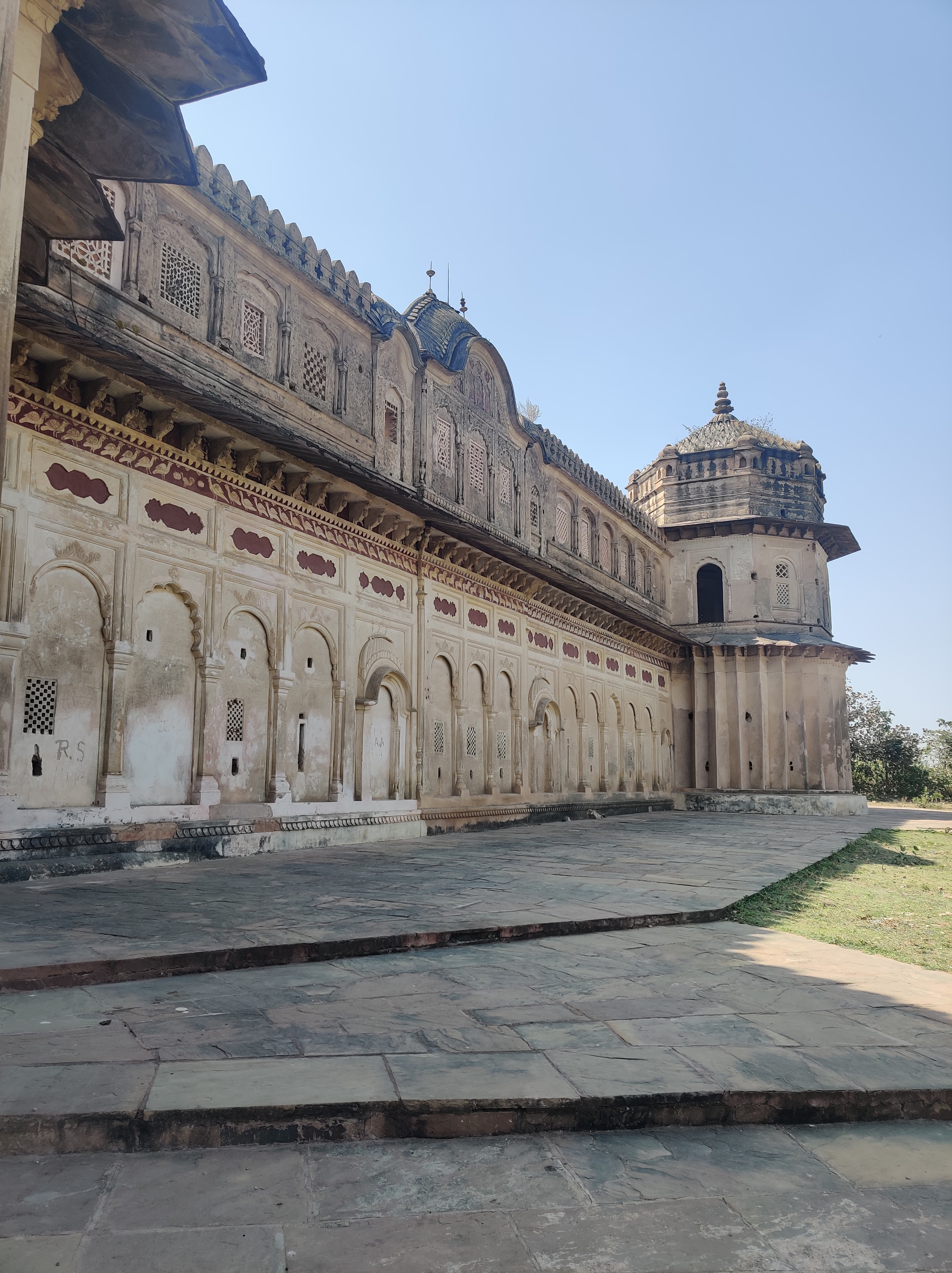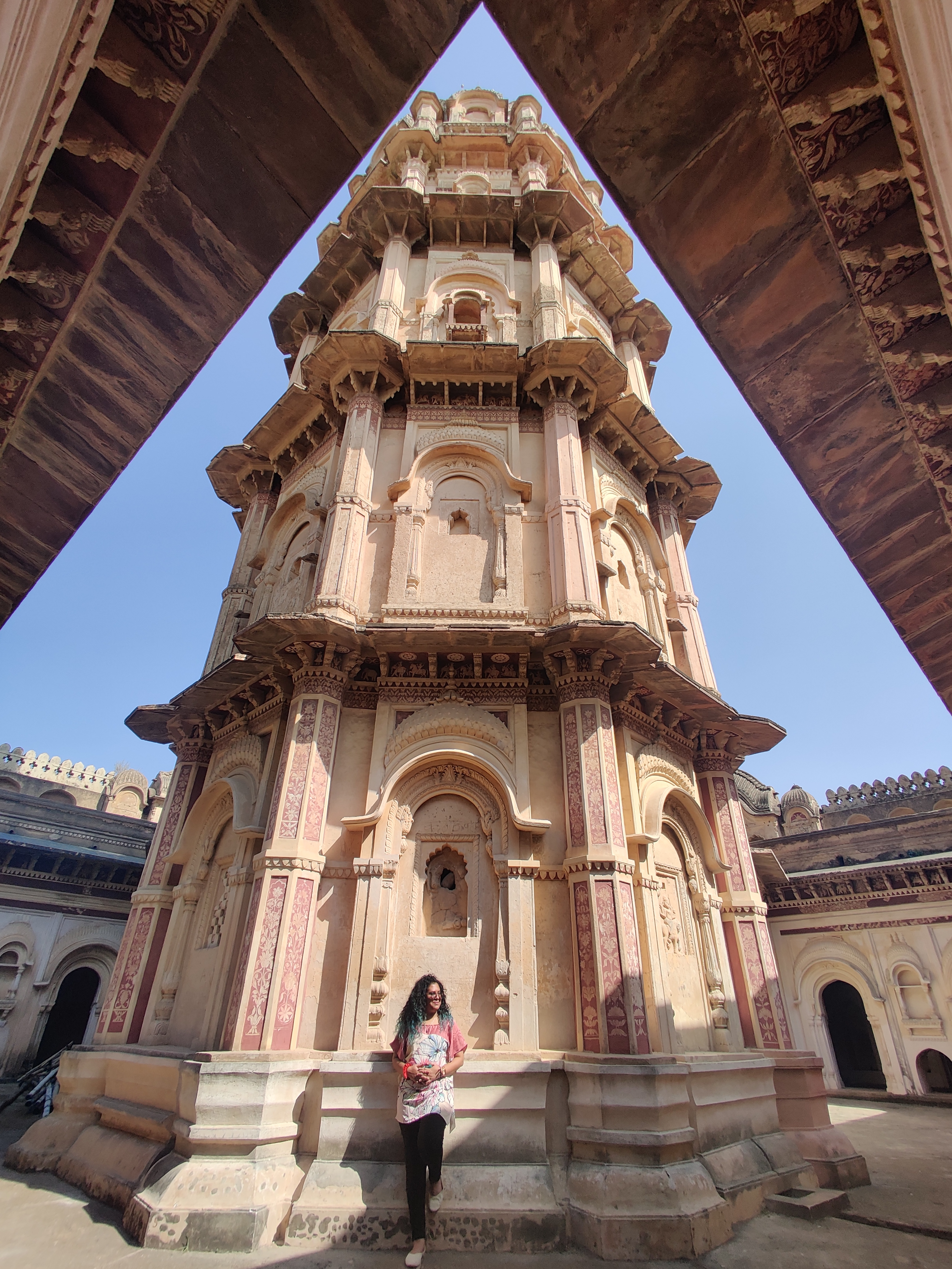 If you have traveled in India, you will have definitely ventured into beautiful temples, or forts, or maybe palaces. You would have seen ornate walls, pillars, beautiful and exemplary doorways, or a statue so refined that you would just want to lightly graze your fingertips against this piece of incredible history. But, I am pretty sure you have never seen a temple, built like a fort, standing separately and yet tall because of its own merits. The solitary Laxmi Narayan temple, located 2 km from the Orchha fort is a building unlike anything else that you have seen in India. The structural plan of the temple is rectangular with four multi-faced projecting bastions at its four corners. The high square walls adds-on to the fort-like feature of the building, while its spires give an impression of a temple. Interestingly, the line and mortar building with its central octagonal tower has numerous windows that has keyholes designed for soldiers to position archers and soldiers as an additional safety feature to the Orchha fort.
