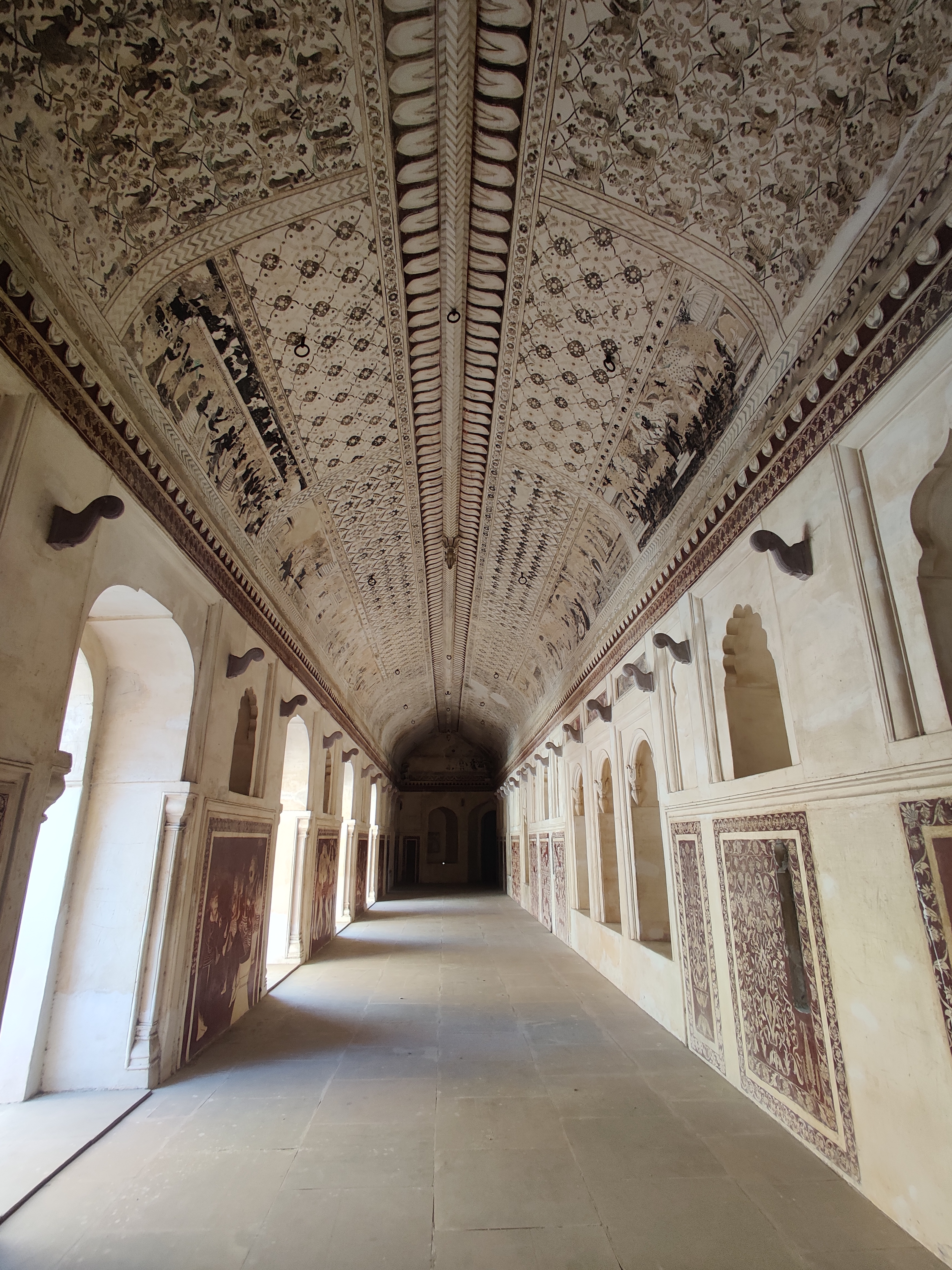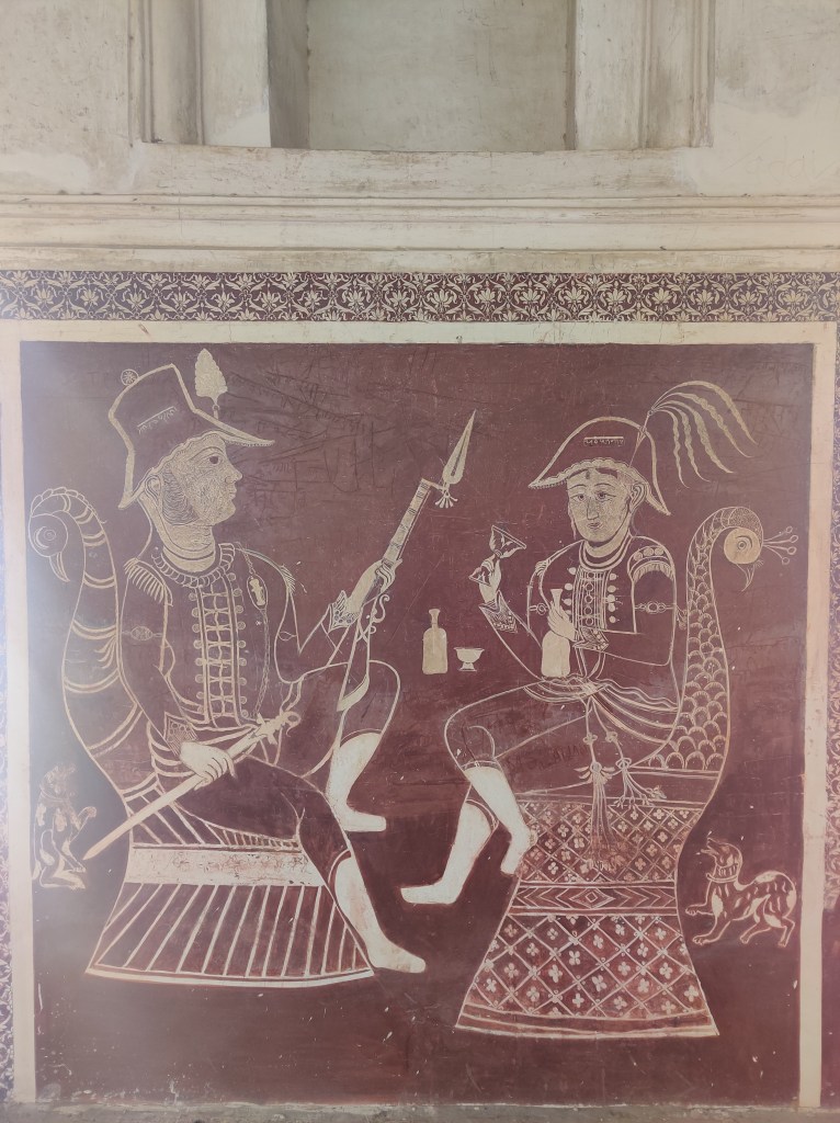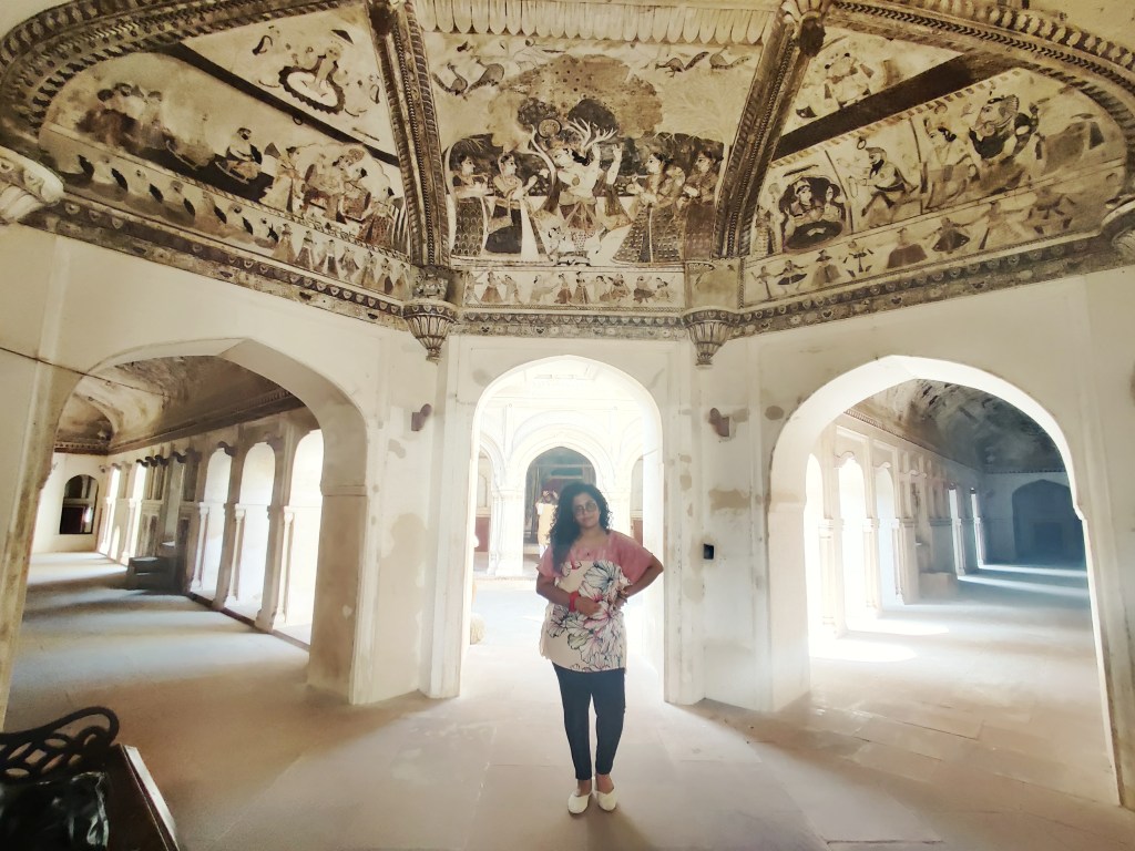 A pro tip for all the tourists out there – Remember this mantra when you set out to explore the history and heritage of India: “Always look up!” That’s the mantra that will ground you, while you walk around Laxmi Narayan temple and watch it unfolding its many stories! There are four art galleries waiting for you to explore, each unique and equally magnificent – showcasing instances and nuances from Ramayana, Bhagvad Gita, Krishna leela, lives of the local rulers and the First war of Independence in 1857. These paintings are dated back to medieval era of India, hence you can see a large depiction of Hindu deities. All the paintings have been done using natural colours, using a style of art called fresco. I have gone in-depth recently on the topic as well, so check that out!