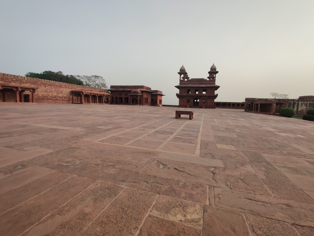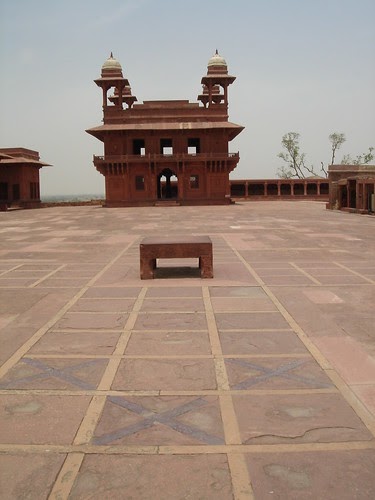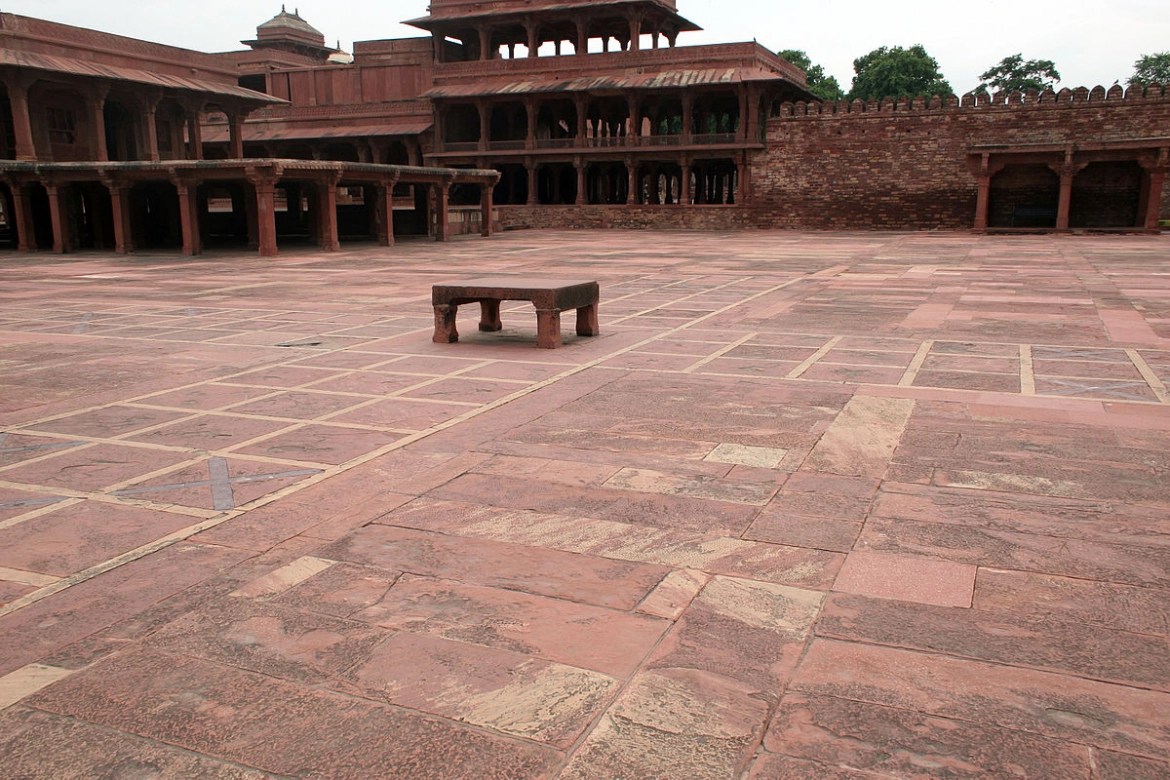 The Pachisi Court in Fatehpur Sikri was built close to the Diwan-i-Am. The ground of the courtyard resembles an actual chess board because it is made in a combination of black and white squares.