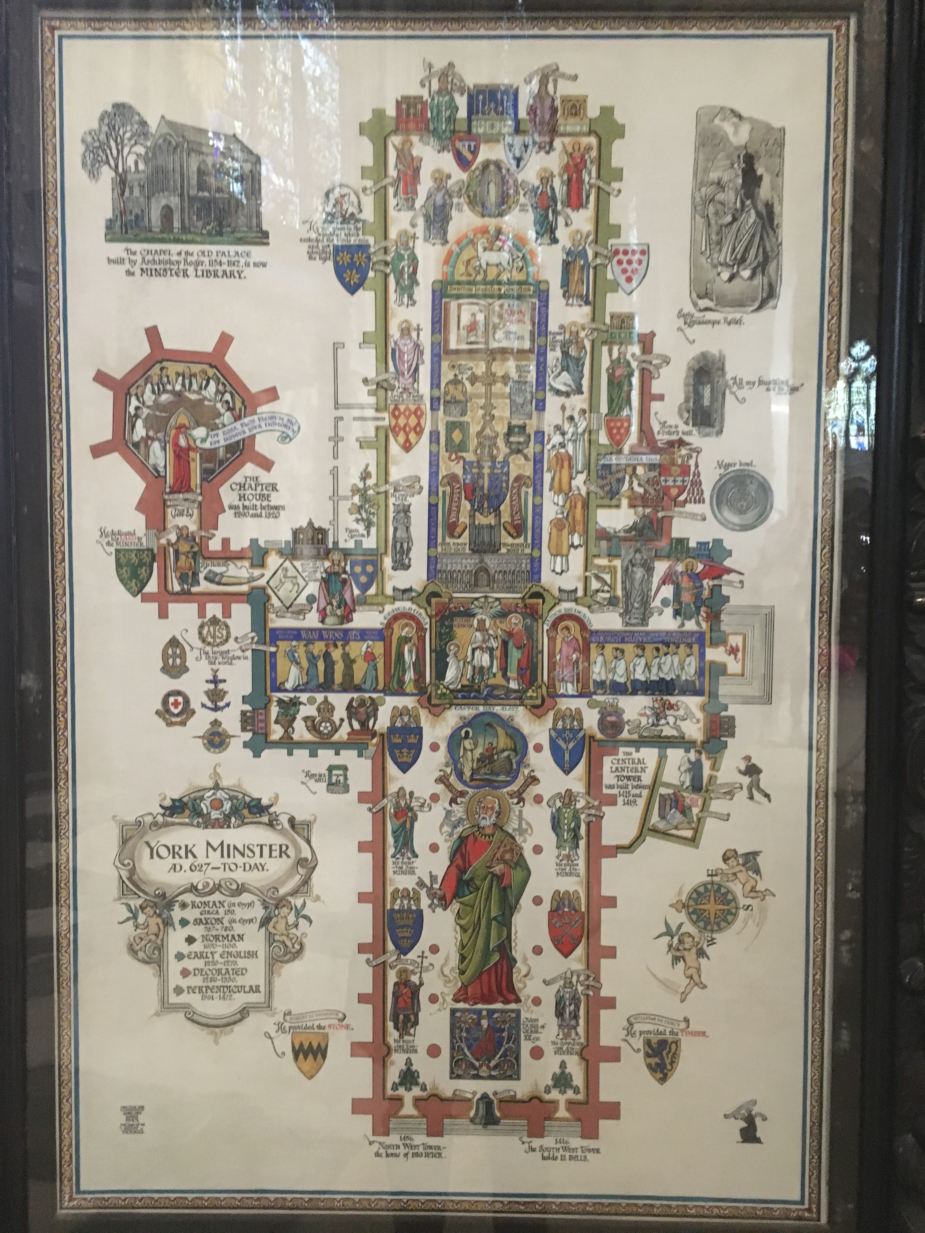 York Minster is officially known as the ‘Cathedral and Metropolitical Church of St Peter in York’. In the past, the church sat within its own walled precinct, known as the Liberty of St Peter. What that simply means is that not every part of medieval York came within the Mayor’s authority. Large institutions like the Abbey (St Mary’s) and the Minster retained control of all that went on within their walled boundary. Although it is by definition a cathedral, the word ‘cathedral’ did not come into actual use until the Norman Conquest.