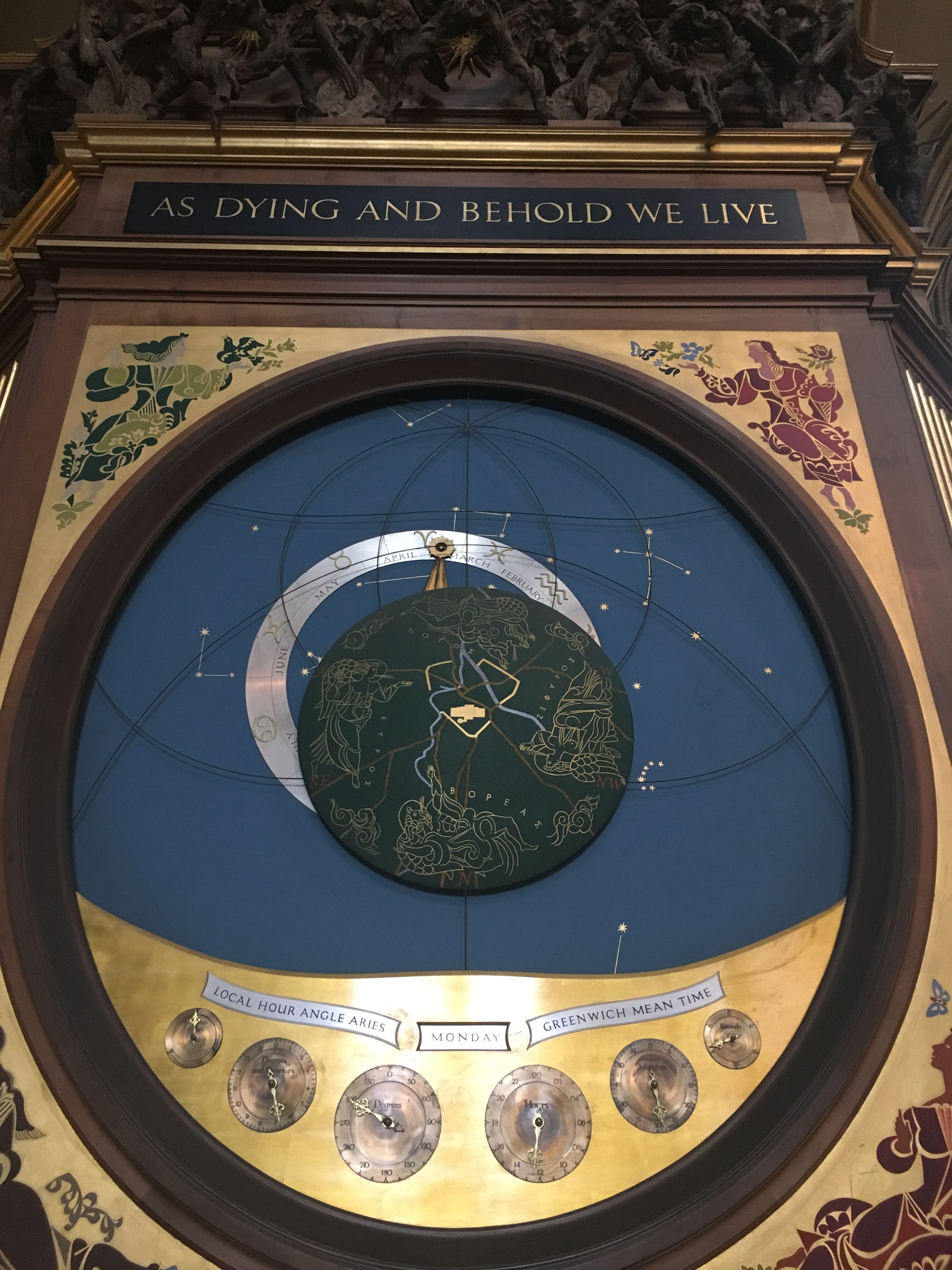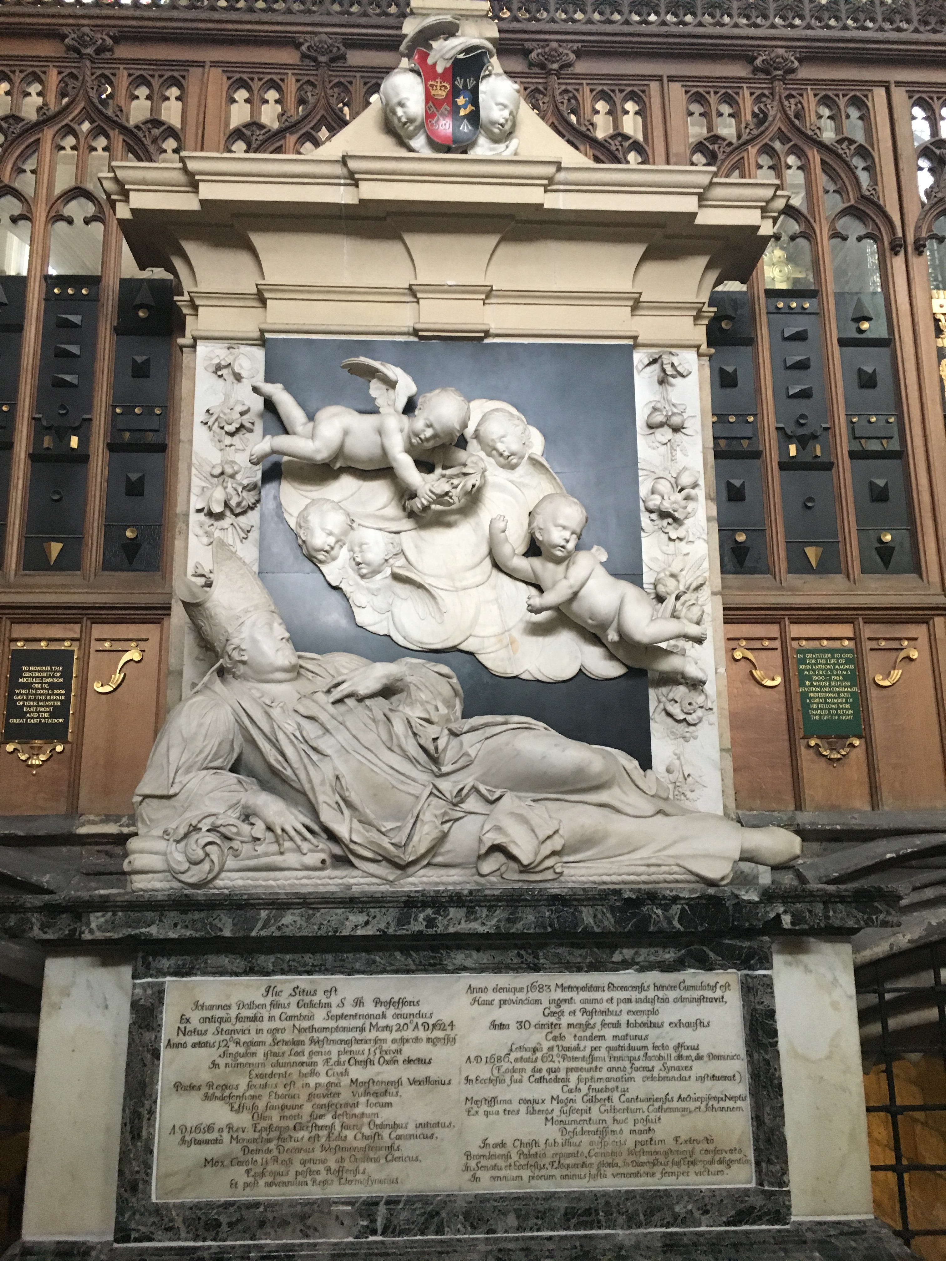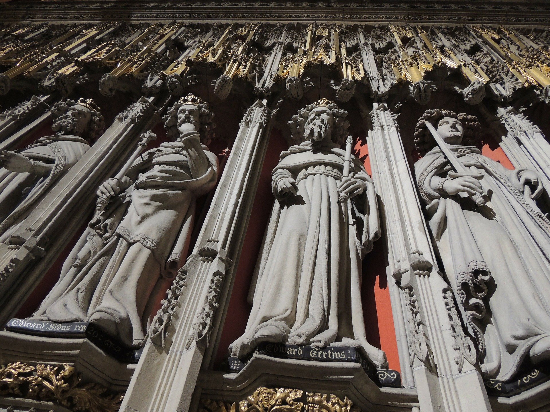 The Minster is also home to the five sister window, a term coined by Charles Dickens, which dates to the mid-1200s. After World War I, the window was restored and was rededicated as a monument to the women of the British Empire who died while serving their country during the war, including Edith Cavell, a nurse who was executed in 1915 after helping more than 200 Allied soldiers escape from German-occupied Belgium. The west window, also known as the Heart of Yorkshire, installed between 1338 and 1339, includes depictions of the archbishops of York and Christ’s apostles, along with panels showing scenes from the life of Christ, as well as a panel depicting Mary as Queen. It was restored in 1989-1990 because of erosion.