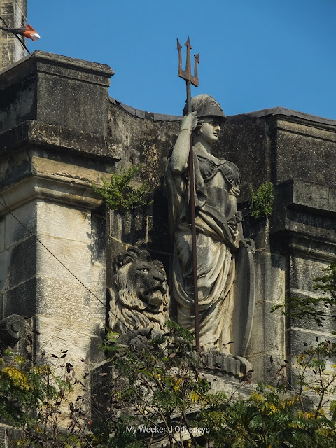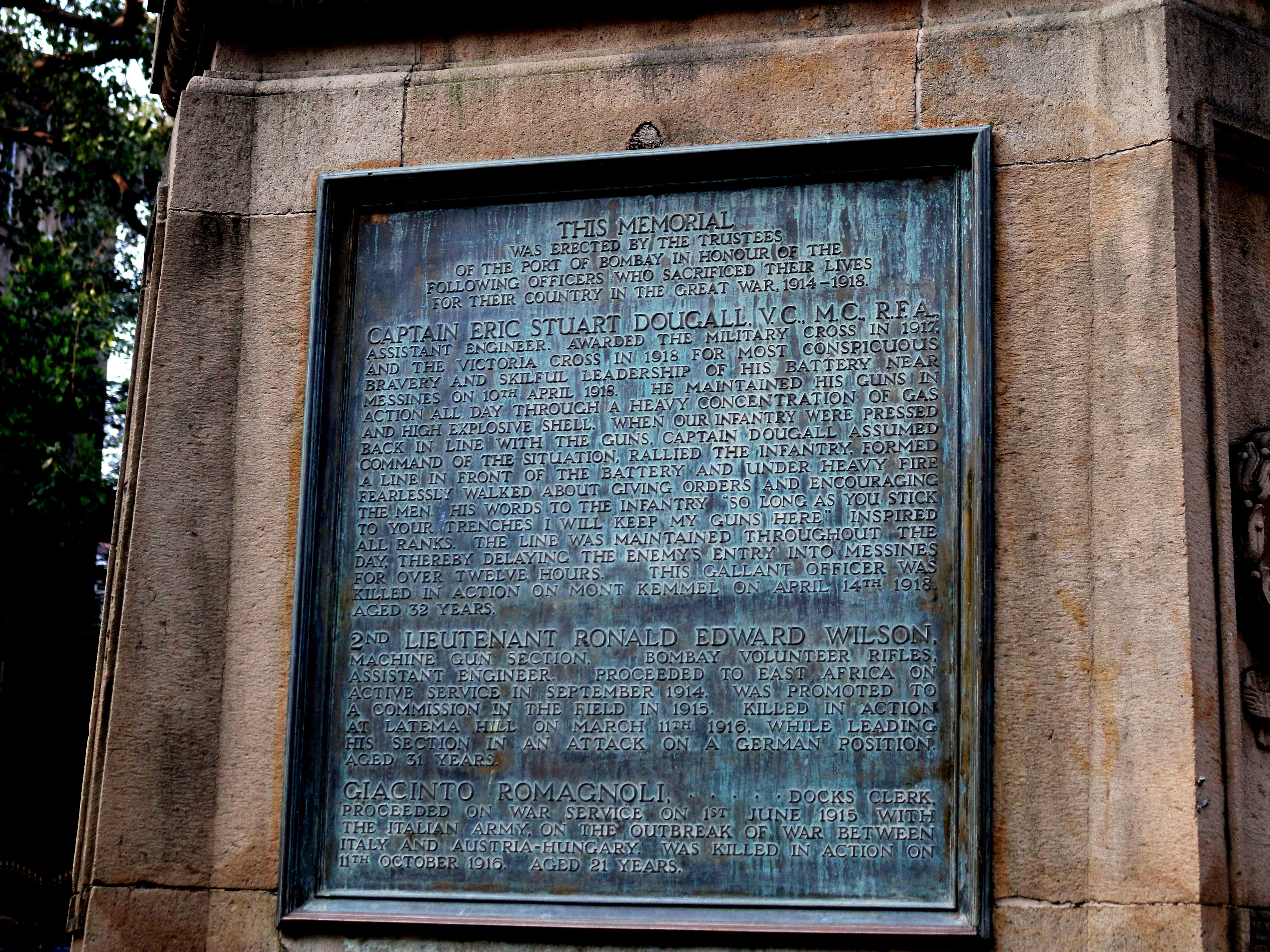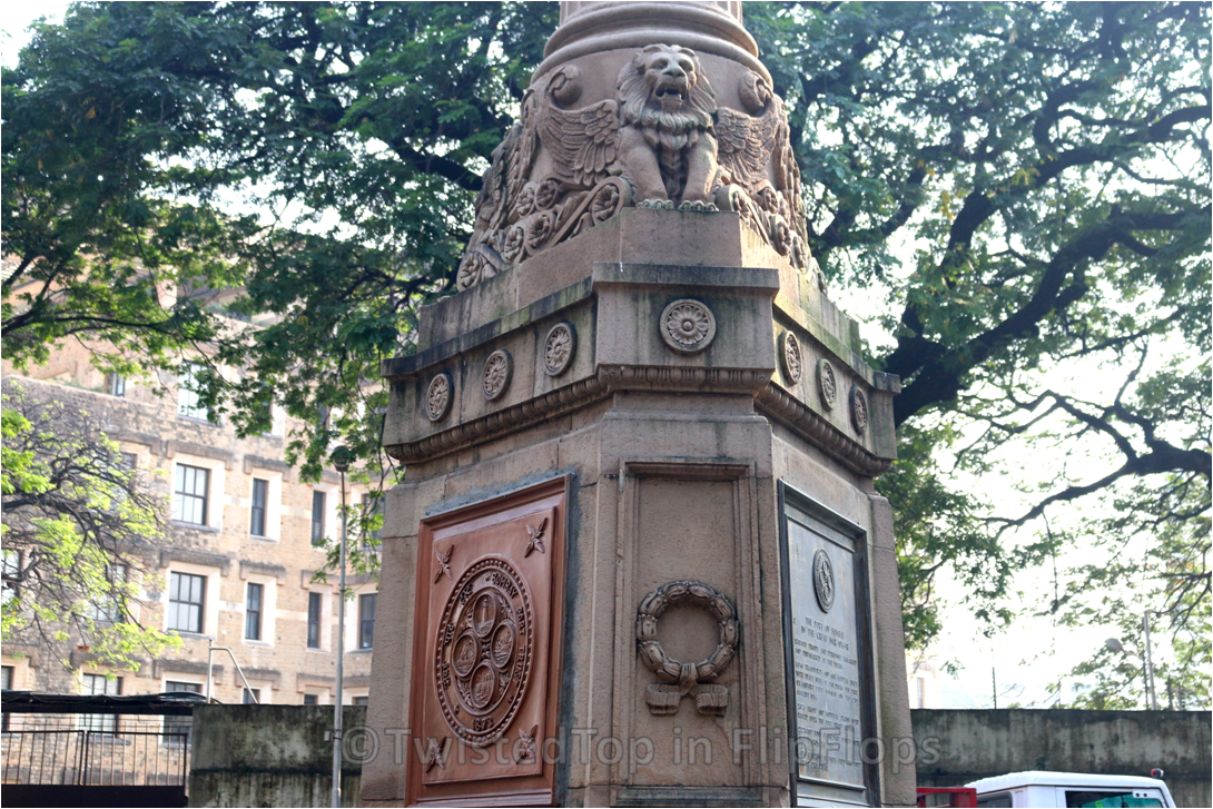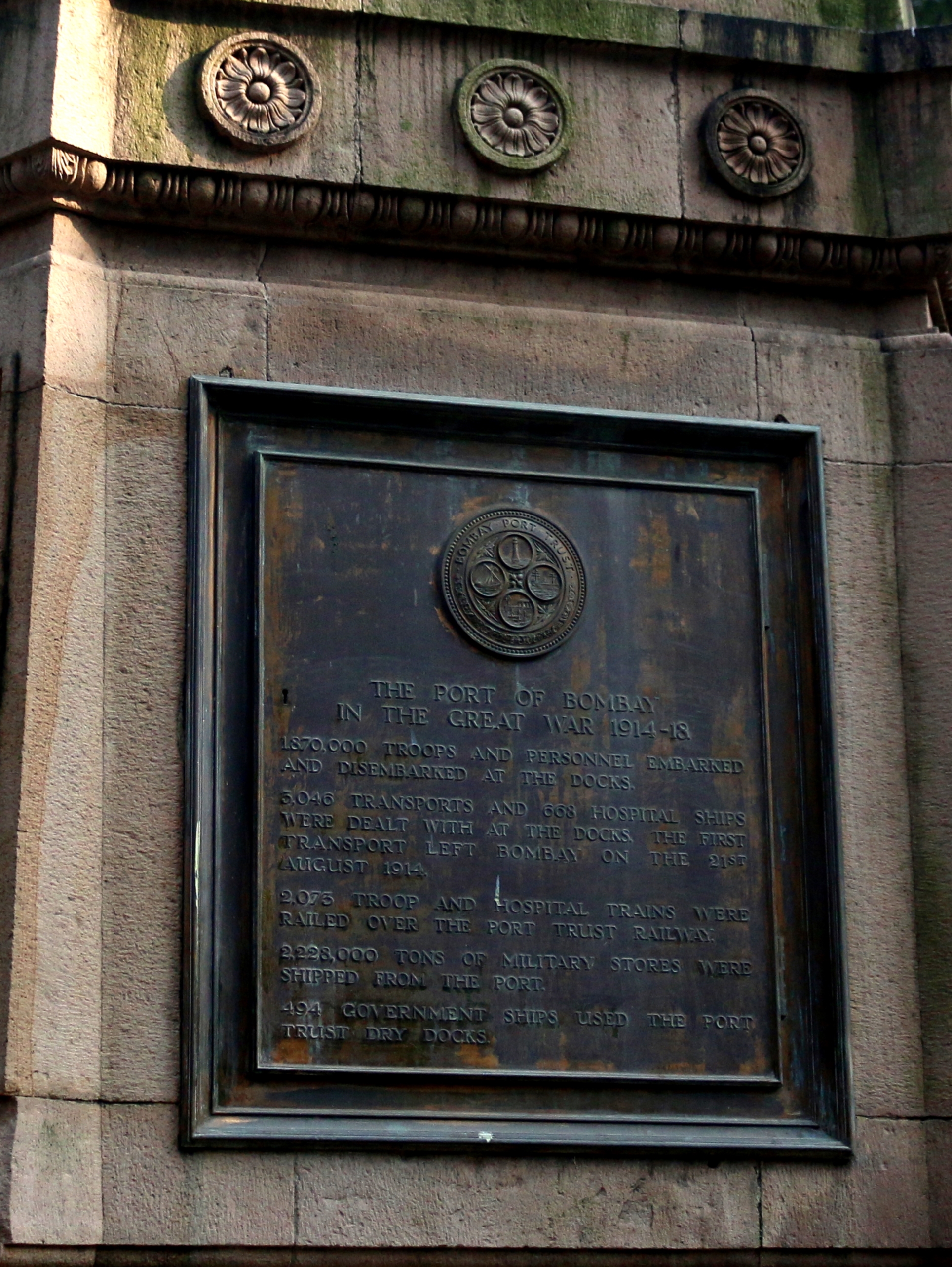 The WWI Memorial located near the Darabshaw House comprises of a doric sandstone column, decorated with brass plaques on three sides, standing in silent homage to the role of the Bombay Port Trust during WW1 (1914 – 1918) and its employees who died whilst serving the allied forces.