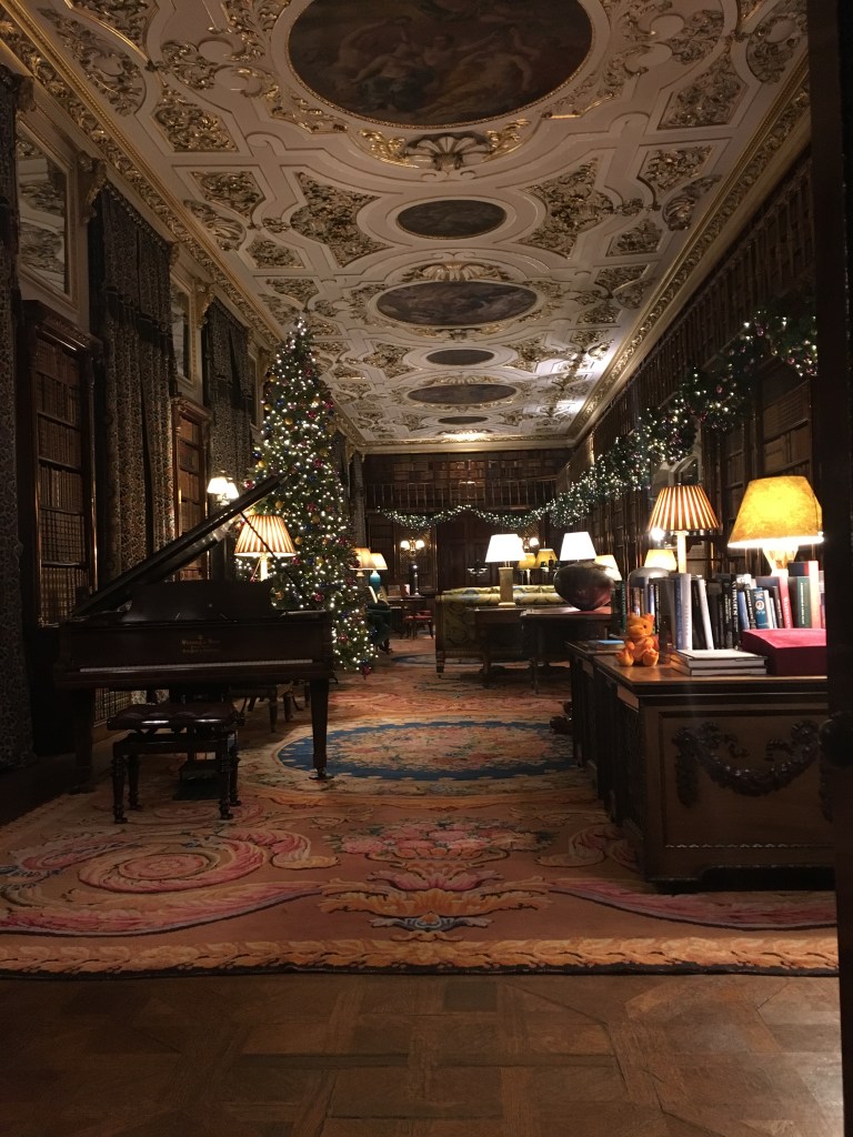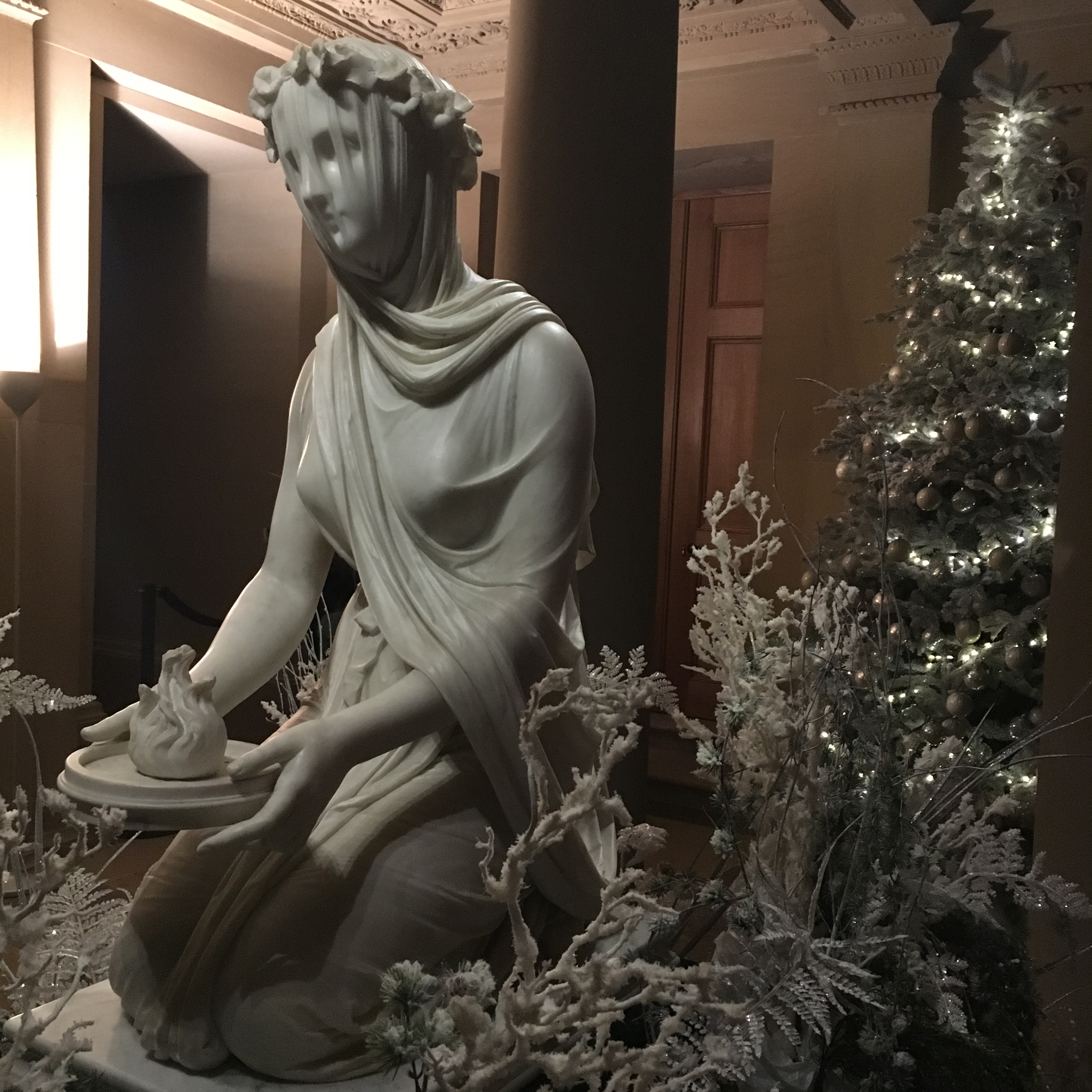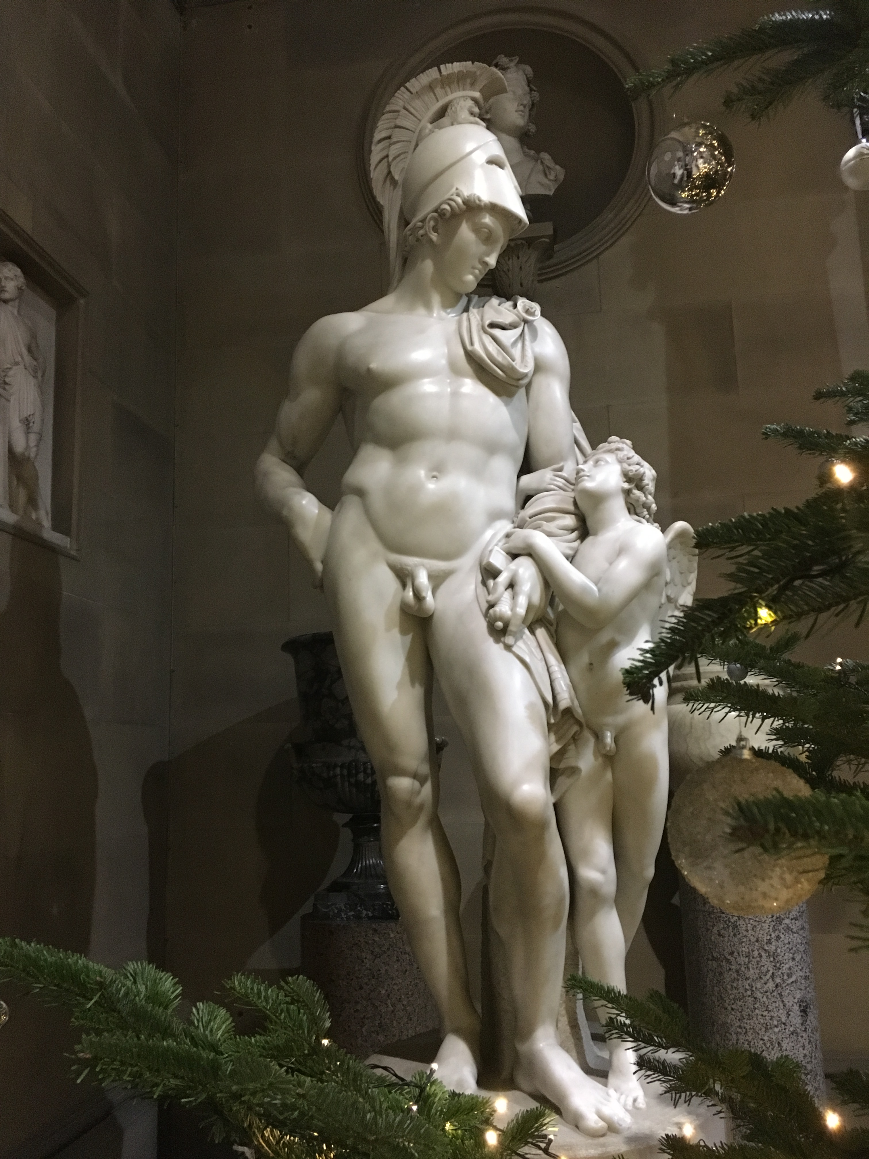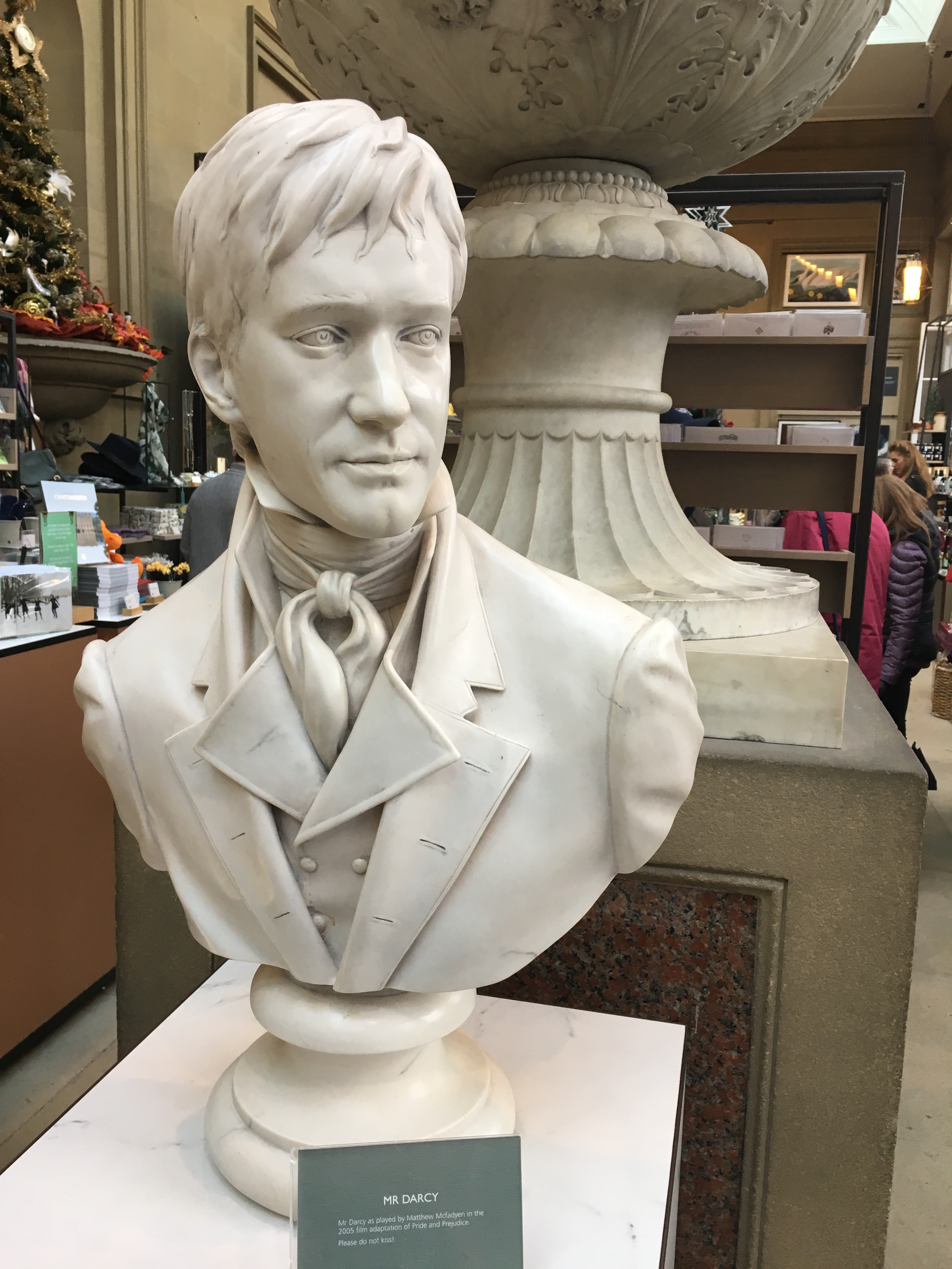 ‘Pemberley’, the lavish estate of Mr Darcy himself, is largely Chatsworth House, Derbyshire, estate homes of the Duke and Duchess of Devonshire. Not only the exterior, here you can see the grand staircase and painted ceiling which so overwhelm Elizabeth, as well as the Sculpture Court, with the intriguing veiled figure, and the bust of Mr Darcy hidden in the gift shop. Since we made the visit during Christmas time, lot of the decorations of the interiors has been set-up to suit the theme of festivities.