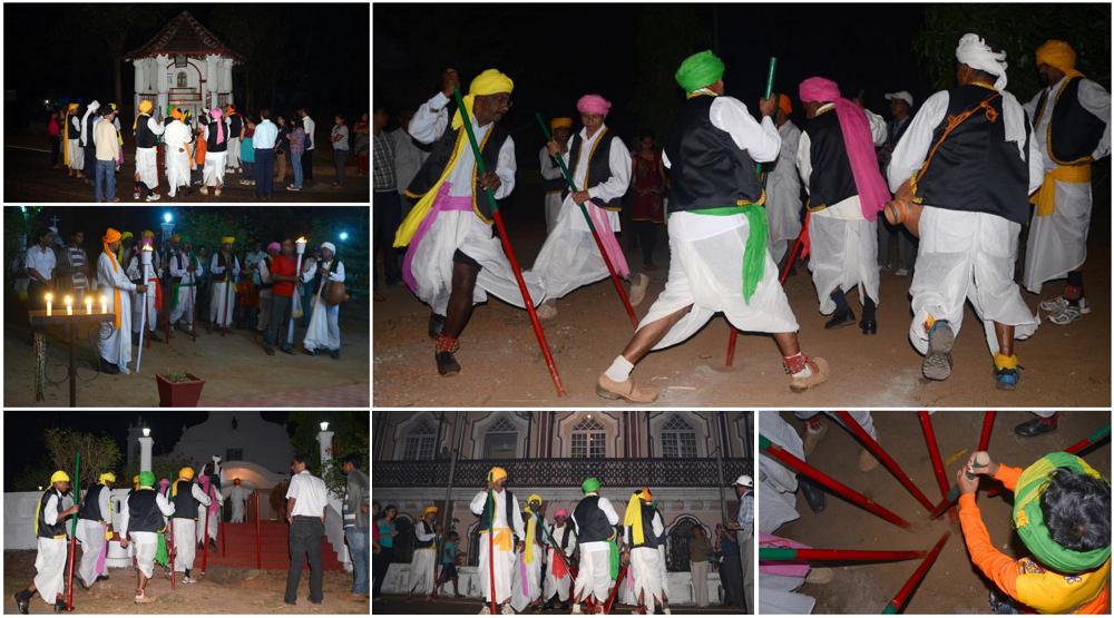 10 Catholic males of the upper caste, decked in traditional attire – a dhoti, a jacket, a colourful turban, ghungroos (ankle bells) on the left foot- and carrying a musoll (pestle), gather at the mandda khuris. Before starting the dance at the chapel, the chapel bell is rung. After lighting candles and reciting a Christian prayer before the cross, the mussoll dance is performed by pounding pestles into the ground. The entourage then march in procession, holding lit torches to the San Tiago chapel, where the sequence is repeated. From here, they march to each and every house belonging only to the gaunkar families, performing the mussoll dance. The lyrics hail the king “Hari haracho khel khelaita. Khel durgabhair shivo dita” and the message about the destruction of the town of Chandrapur and its people.