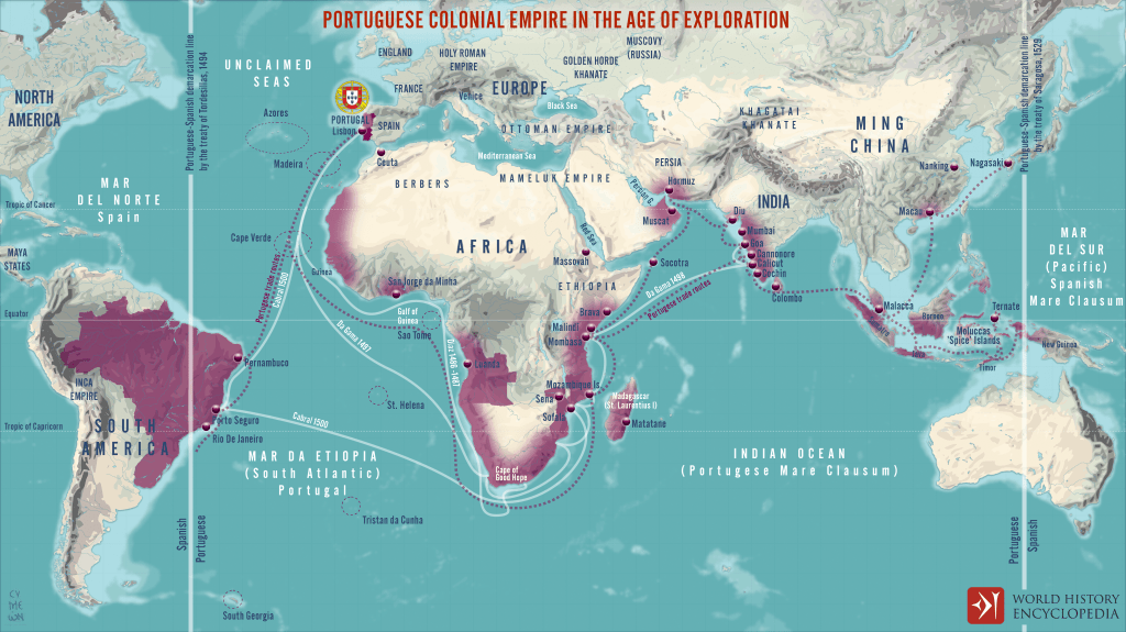 Spice route leads to the greatest topic of world history – Portuguese monopoly over the spice route. You see, before the oceanic route, most of the land routes to India were under the monopoly of the Arabs who acted as intermediaries for all trade between India and Europe. Hence, under the impetus of the spice trade, Portugal expanded territorially and commercially. Undeterred by the immensity of the geographical area the Portuguese would have to patrol, King Manuel I of Portugal (r. 1495-1521) declared a royal monopoly on the spice trade. A viceroy of India was appointed in 1505, even though the Portuguese had no real territorial aims beyond controlling coastal trading centres. Portuguese Goa was established in 1510 on the west coast of India, and within 20 years it became the capital of Portuguese India. In 1511 Malacca in Malaysia was taken over. Hormuz at the mouth of the Persian Gulf followed in 1515, and a fort was established at Colombo in Sri Lanka in 1518. At Goa, the viceroy was effectively both the civil and military governor of the Estado da India, and he was, in theory, accountable only to the king. Religious affairs were led by a bishop based at Goa (from 1538, then an archbishop from 1560), with the first cathedral built in 1540.