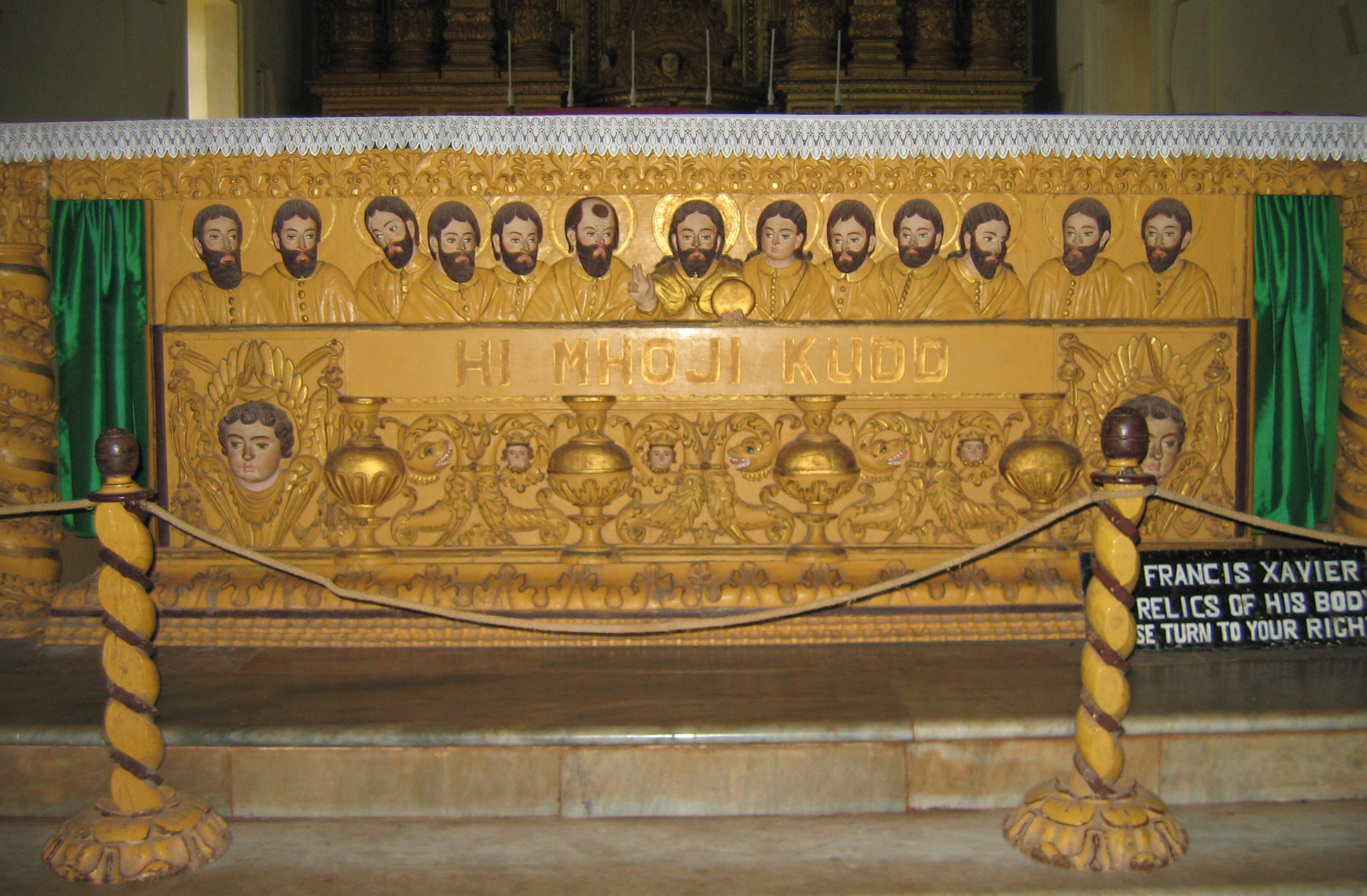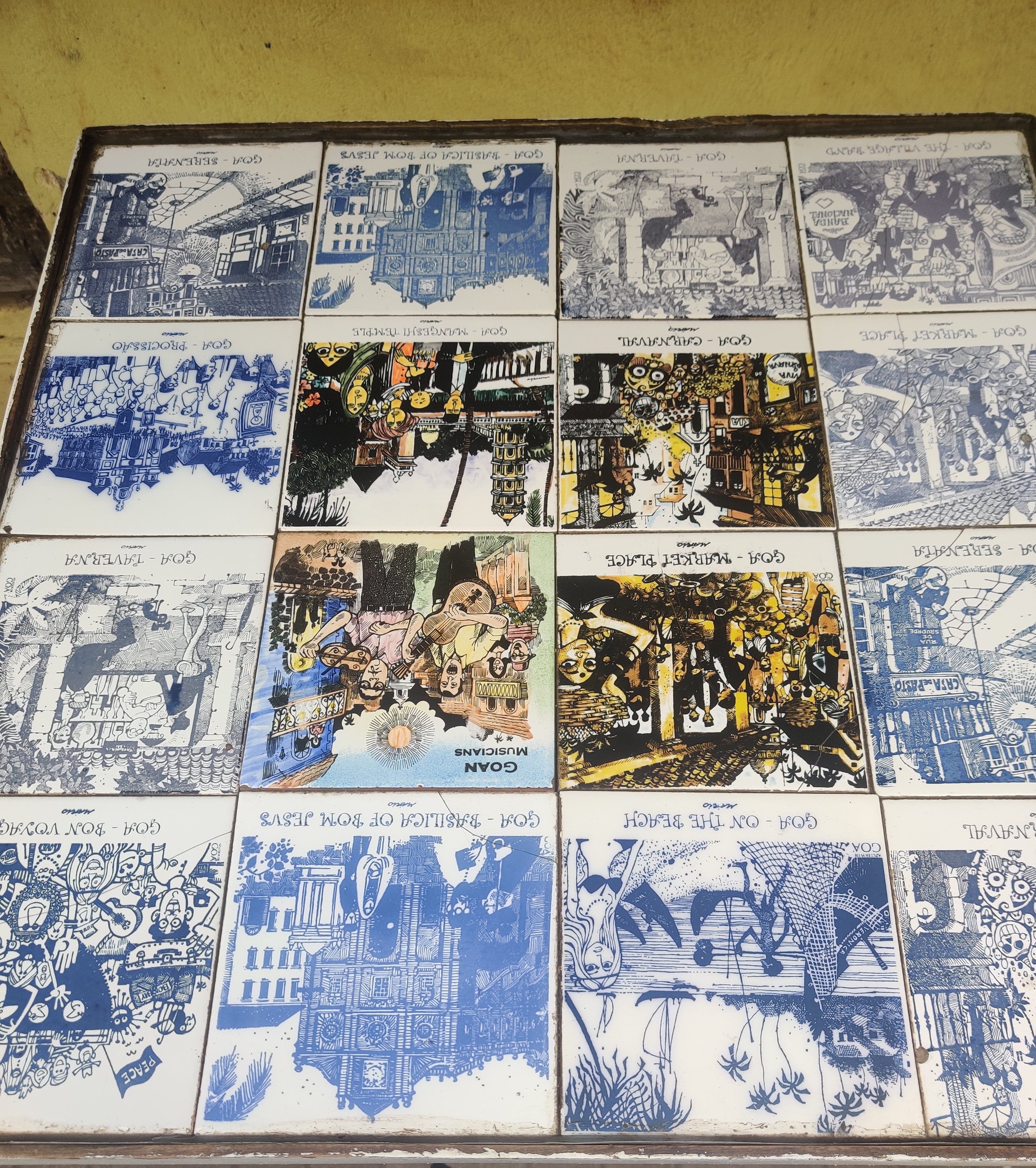 Along with the artistic characteristics, Azulejos at Goa also highlights a important narrative of Portuguese influence on Goa – Portuguese script. Born in the Catholic convents of Goa, Indo-Portuguese literature was limited,from the sixteenth to the eighteenth centuries, to texts of a religion. Instead of becoming defunct, Portuguese language has been transformed into narratives in the other languages of Goa – Konkani, Marathi, and English. However, not many know about the existence of Romi Konkani. Unlike the ad-hoc transliteration widely used for most other major Indian languages (especially online), Romi Konkani isn’t a placeholder for a “traditional” script. It is a traditional script, one complete with its own set of spelling conventions and literary history in print. Romi is the only such Latin-based writing system used by an Indo-Aryan language in India that is developed as a result of Goa’s sustained cultural interaction with the Portuguese State, and the Portuguese language. A prime example of this would be the existence of the Konkani phrase “Hi mhoji kudd” written on the altar in bold Latin characters, and it means ‘this is my body’, a phrase from the Catholic Eucharist (a translation of the Latin ‘hoc est corpus meum‘).