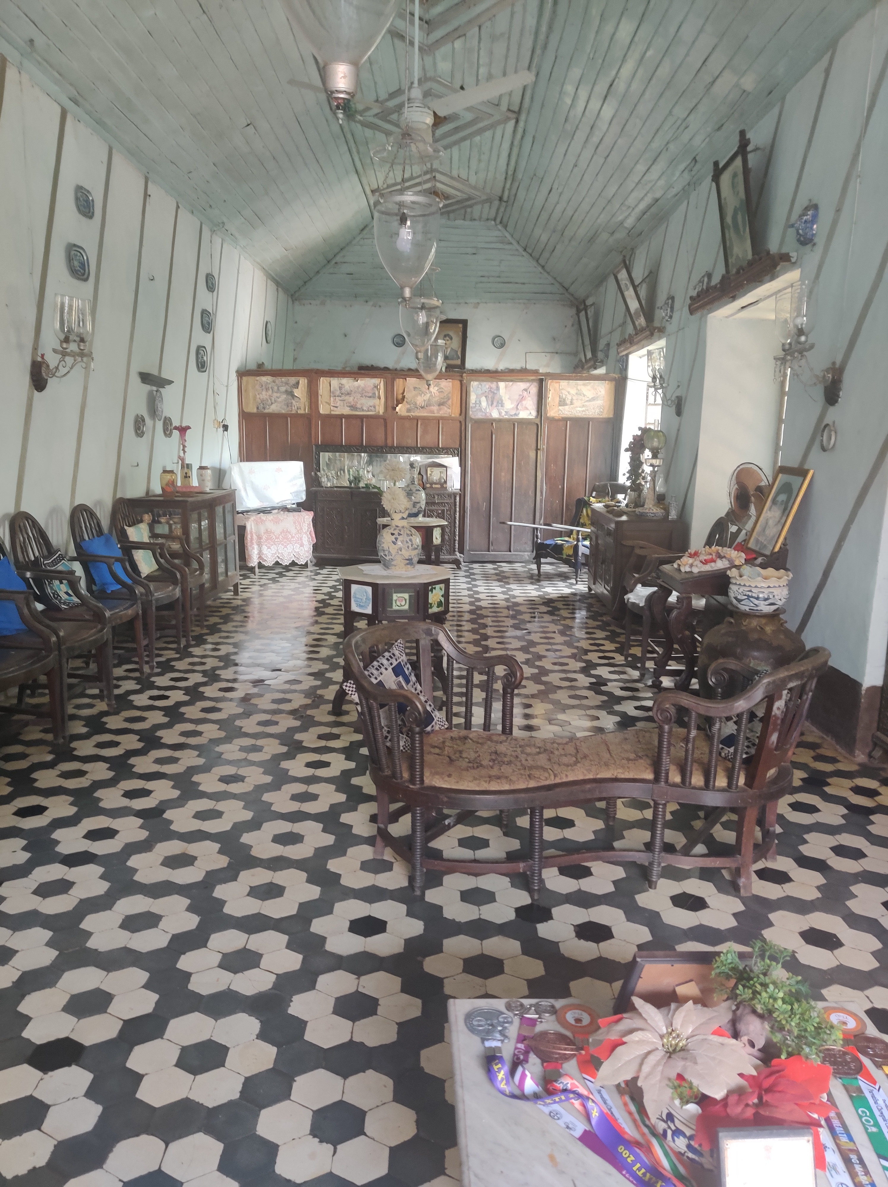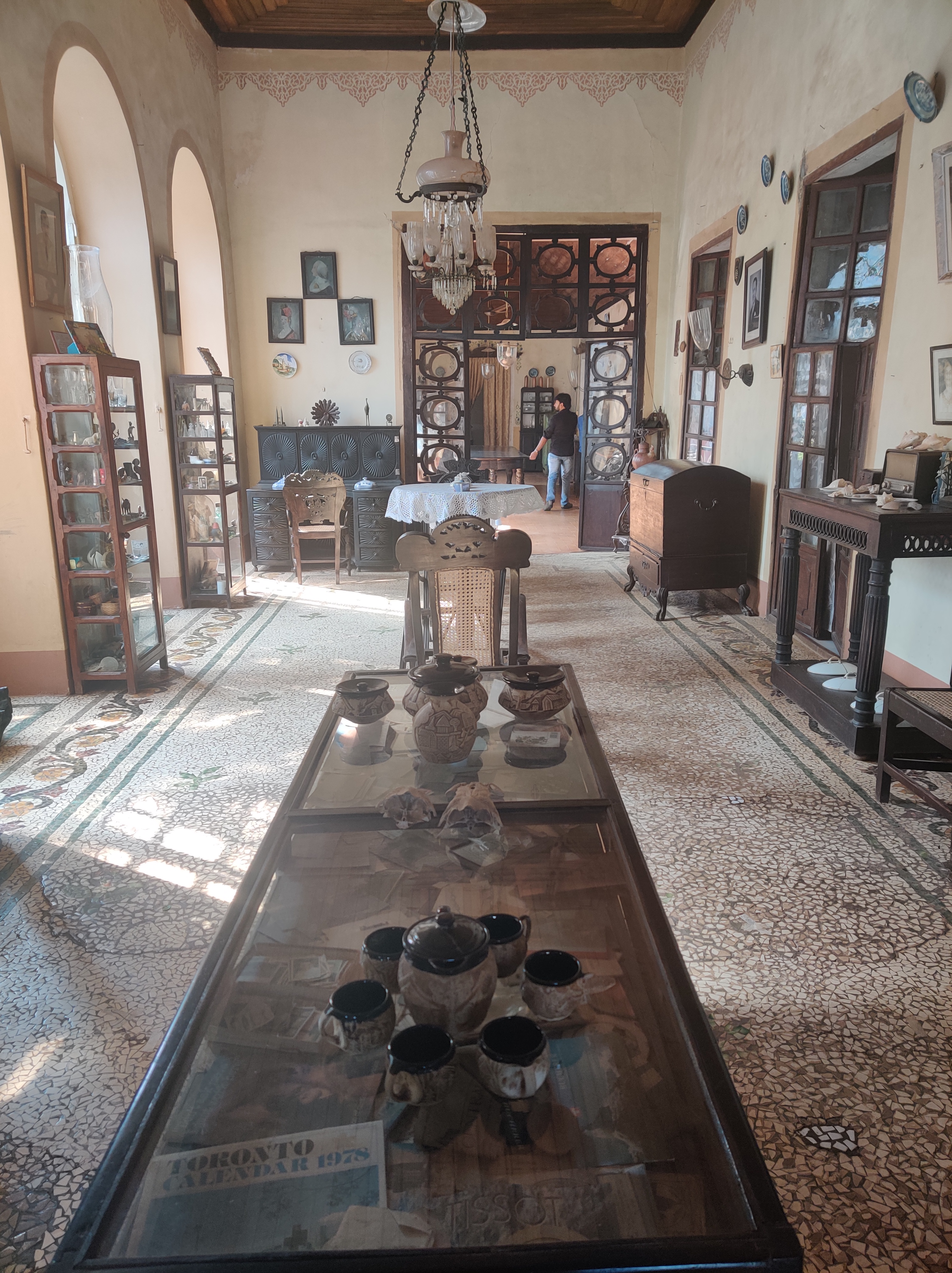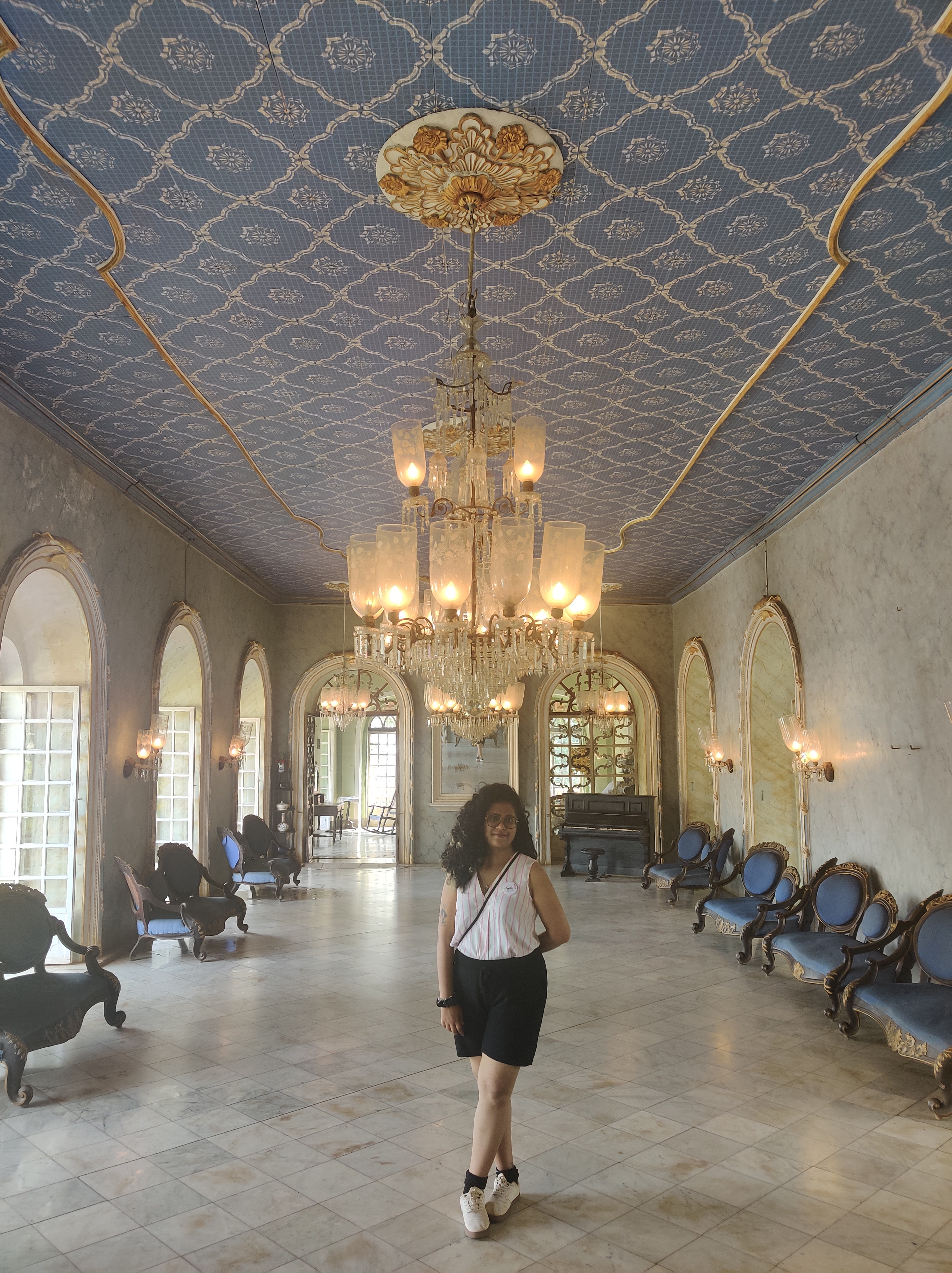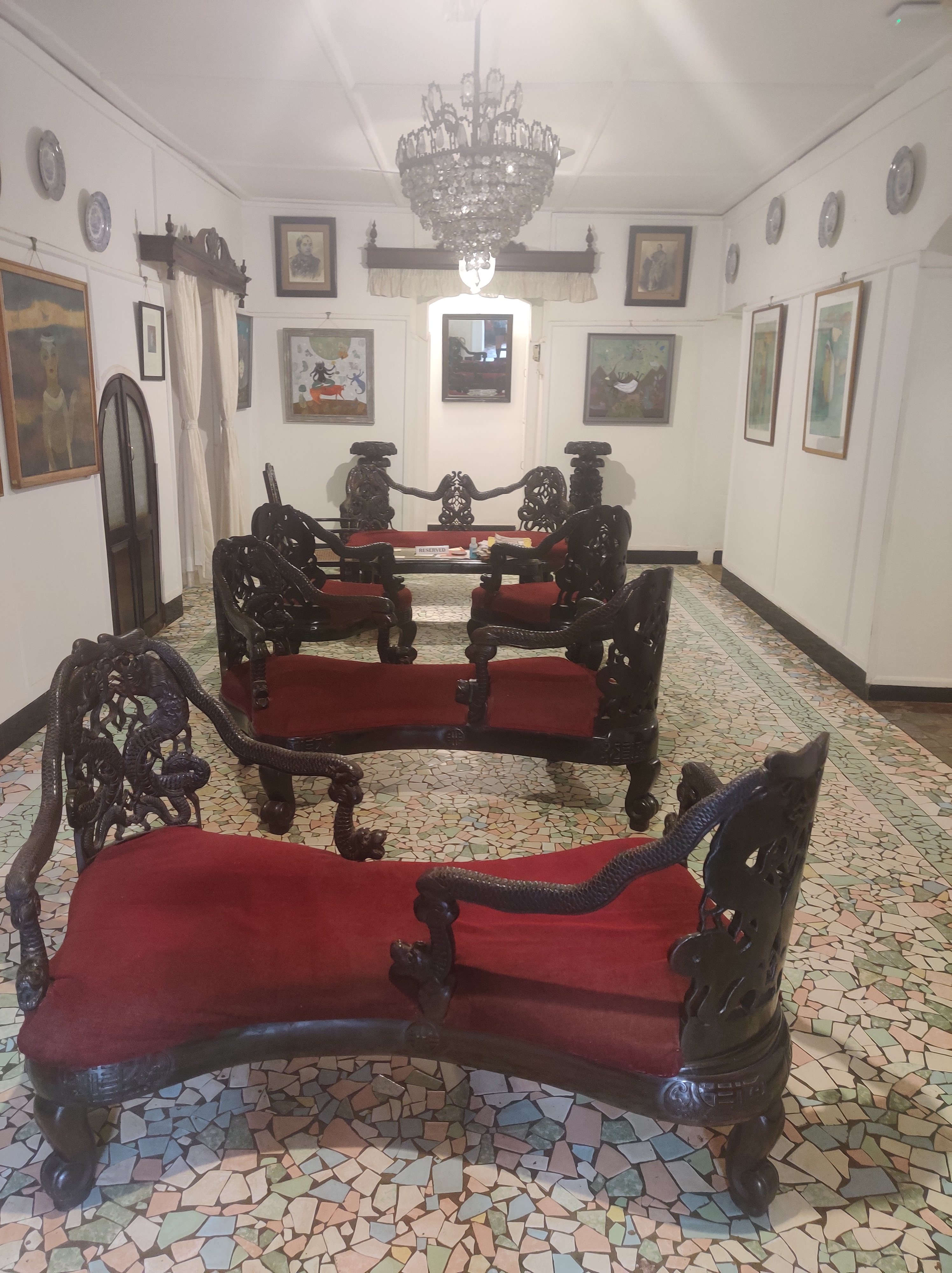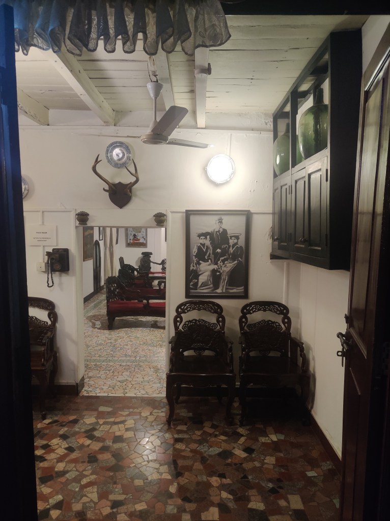 The artefacts collected by the family over a number of years, have added to the beauty of the house. There is a Great Salon, a big ballroom with the floor made of italian marble, antique chanderlier from Europe adorning the ceiling, and heavily carved, ornate rodewood furniture. Thanks to the graciousness of the Braganza family, for the first time in my life, I was able to stand in an original ballroom from centuries ago. Just the outfit of the day was not as per ballroom decor!! What stands out among the furniture is a pair of high-backed chairs, beating the family crest, which was given to the Perira – Braganza family by King Dom Luis of Portugal.