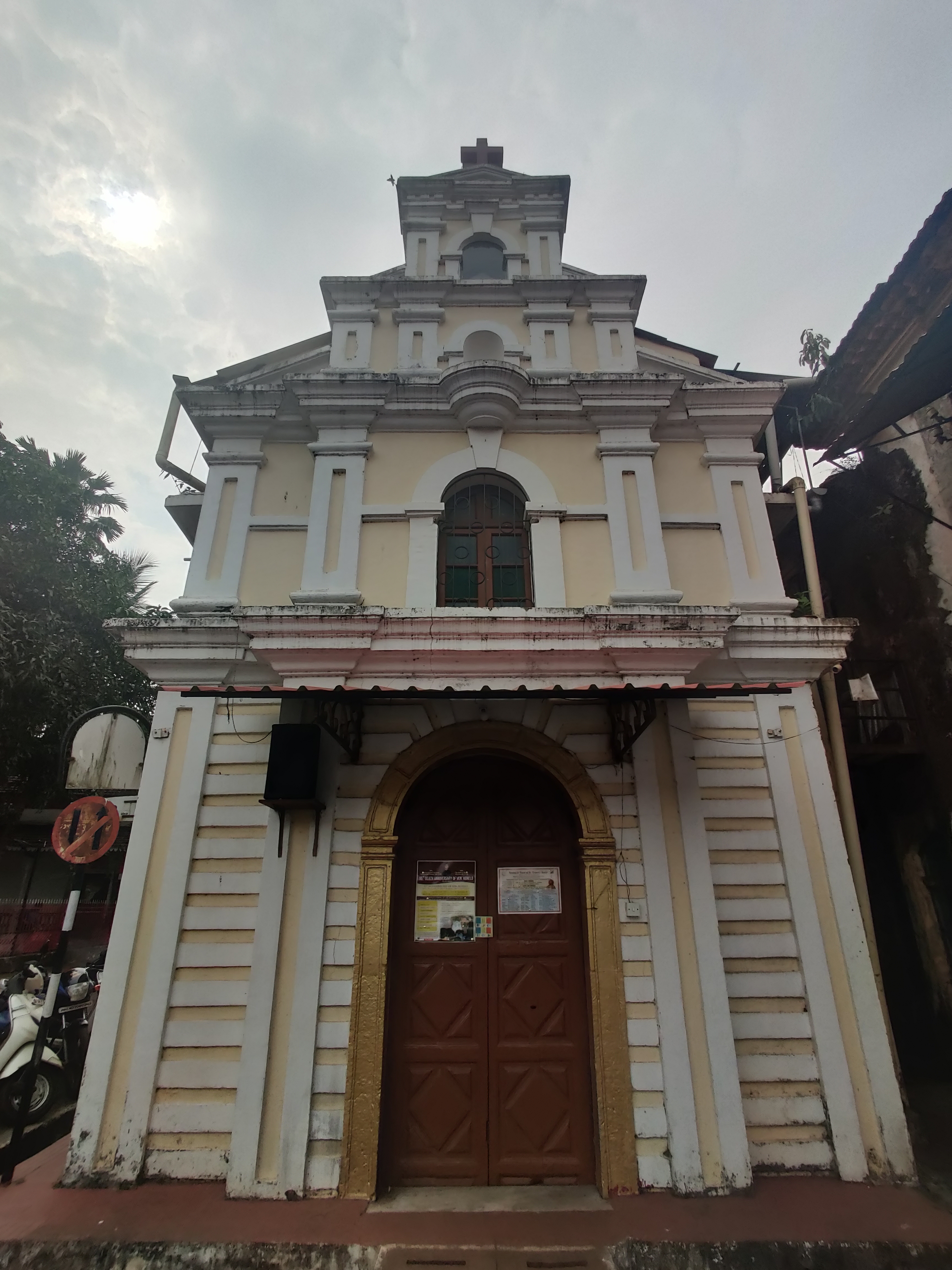 The Fontainhas neighbourhood is lined with houses painted in mustard, indigo, salmon, olive, and similar bold and bright colours. There is an interesting dictum behind the colorful facade that was passed on that during the Portuguese occupation of Goa which stated that no private house or building could be painted in white. Only churches and chapels enjoyed this privilege. For instance, Chapel of St. Thomas (first image) was built in 1849 on the request of people who came to settle in Panjim after leaving Old Goa behind. St. Sebastian Chapel (second picture below), dated 1880, is home to a crucifix which was a relic from the inquisition in Old Goa. The crucifix, which originally stood in the Palace of Inquisition in Old Goa, is depicted with Christ with his eyes open in order to instil fear amongst the heretics brought to the Inquisitors, awaiting their gruesome end.