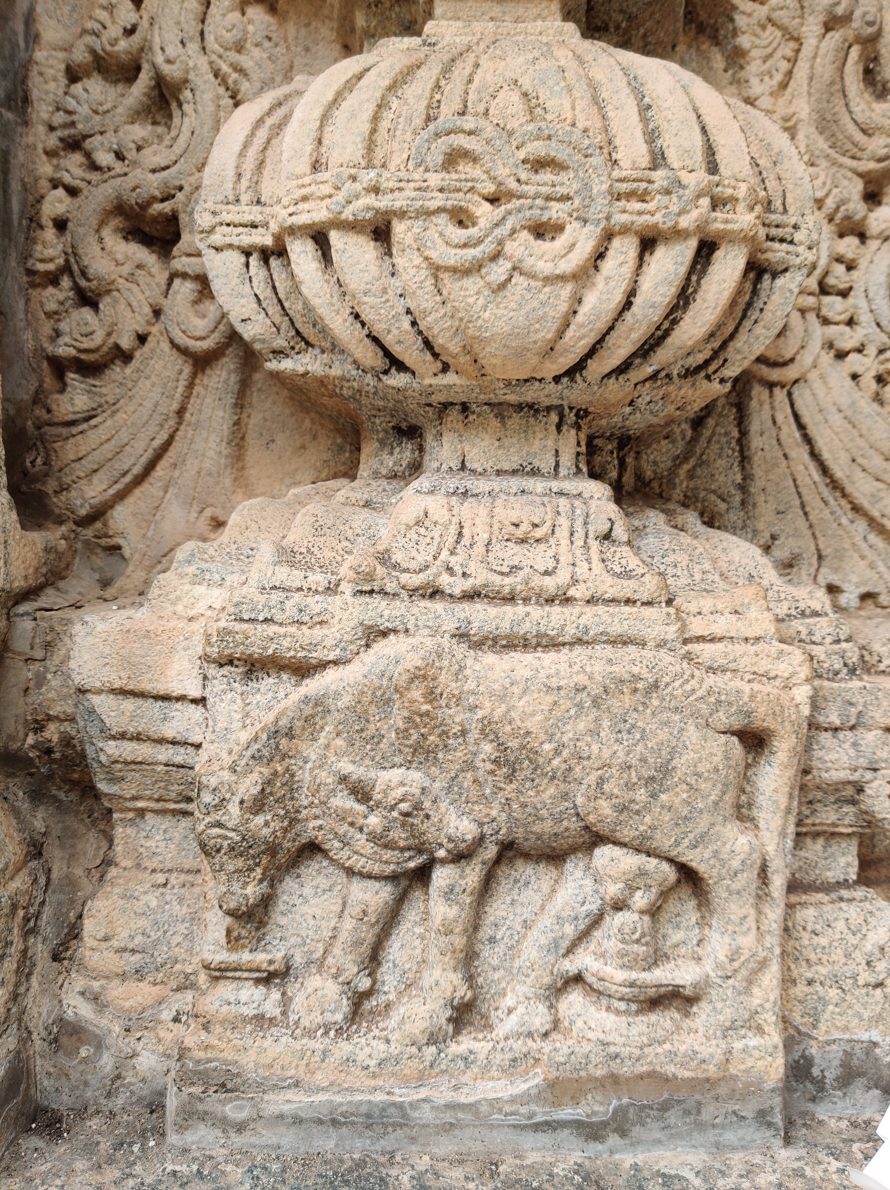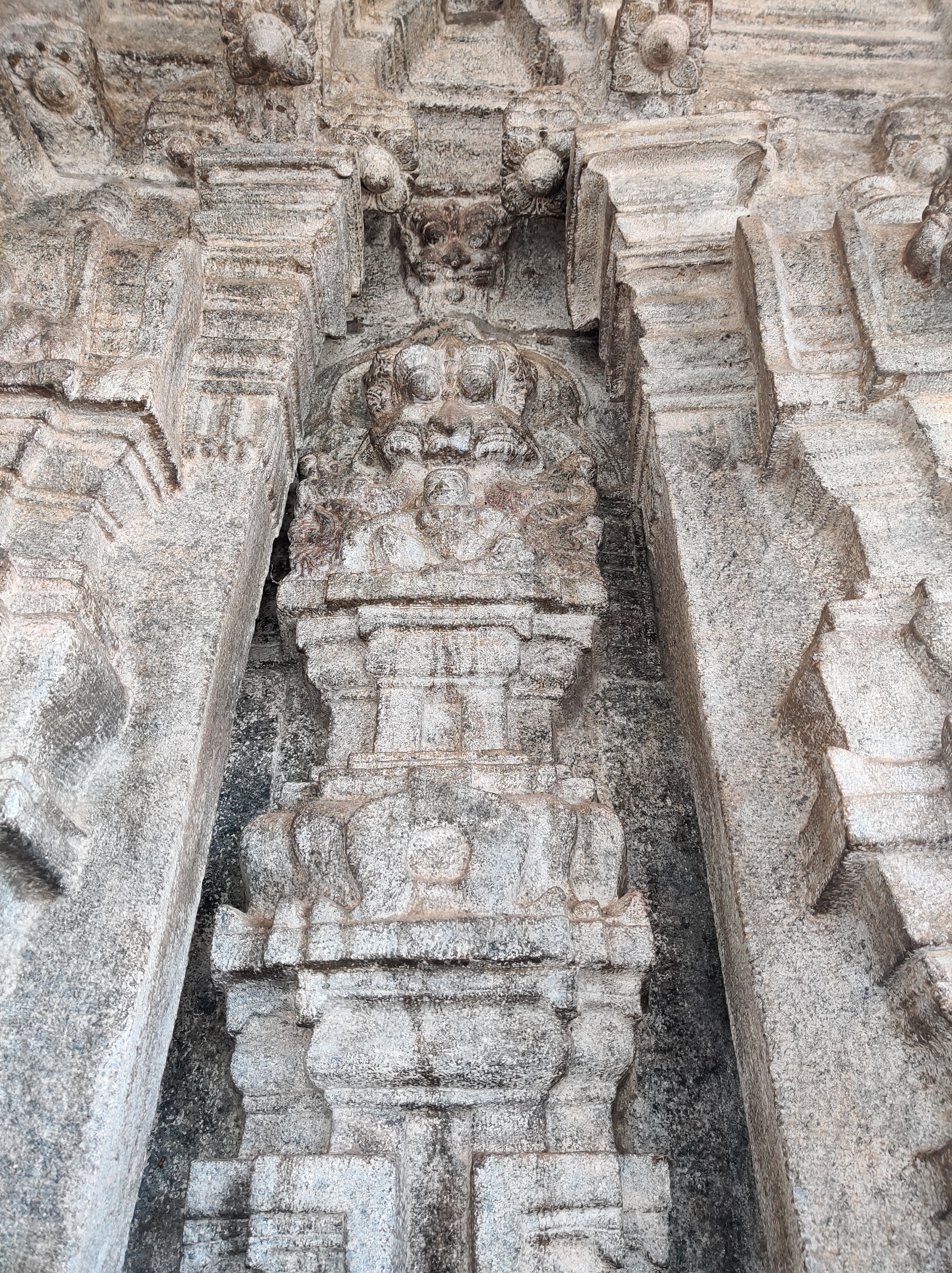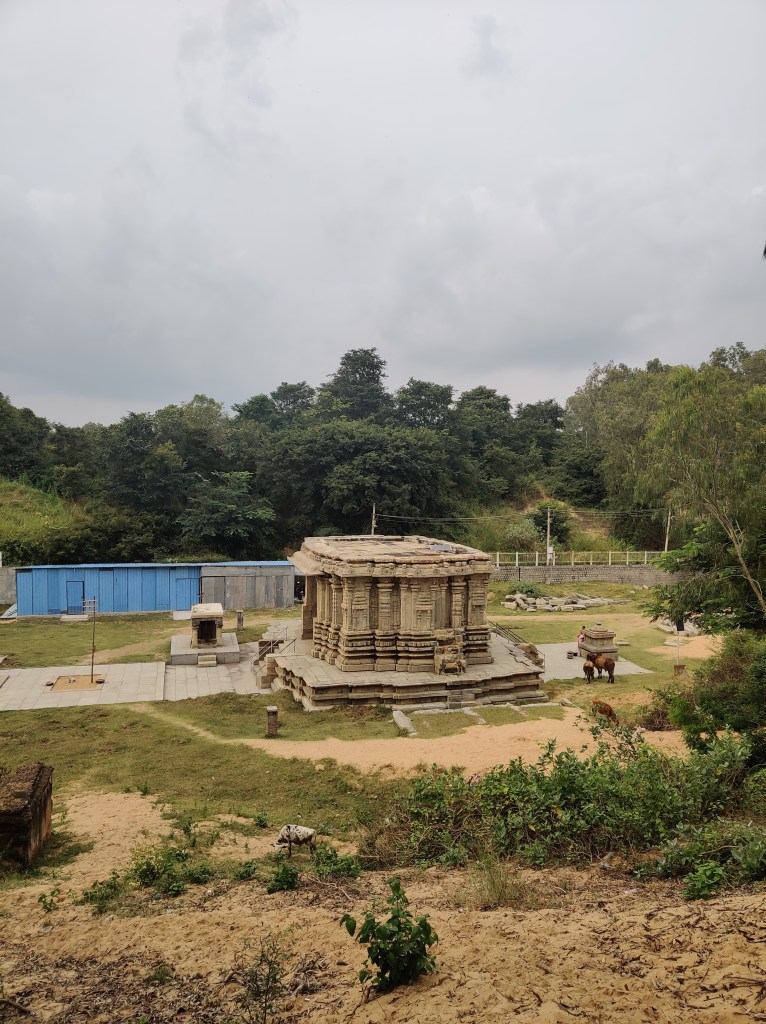 Among the other four Panchalingas, Pataleswara and Maraleswara temples lie surrounded by sand dunes. The Kirti Narayana temple, positioned 20 feet below, forms a sizable complex. Interestingly, the grand entrance of the temple reminded me of Hampi’s famous rock chariot, perhaps hinting at a connection to the Vijayanagara dynasty?! However, complex histories often get lost in translation! Honestly, by the time we reached this temple, especially after trekking through sand mounds, my patience for further exploration had waned. Nevertheless, it’s said that the shrine houses an 8-foot-tall statue of Kirti Narayana, depicting Vishnu in a unique representation.