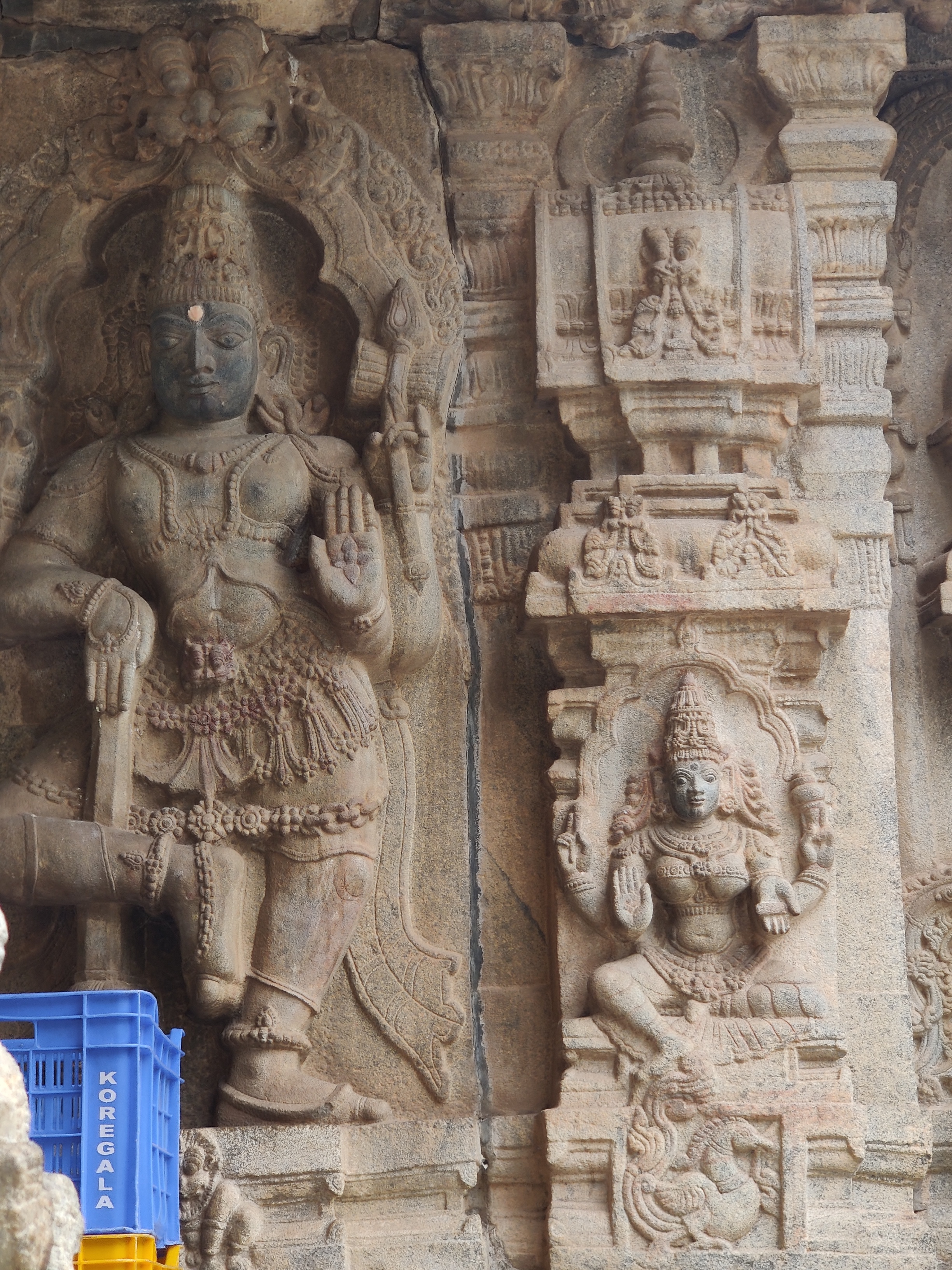 As it’s an active temple, photography of the main shrine is prohibited. However, you can observe the attractively positioned linga alongside its consort Manomaniamba. Notably, the statue of Nandi, a common feature in Shiva temples, is situated on a trapezoid structure diagonally opposite the main shrine.