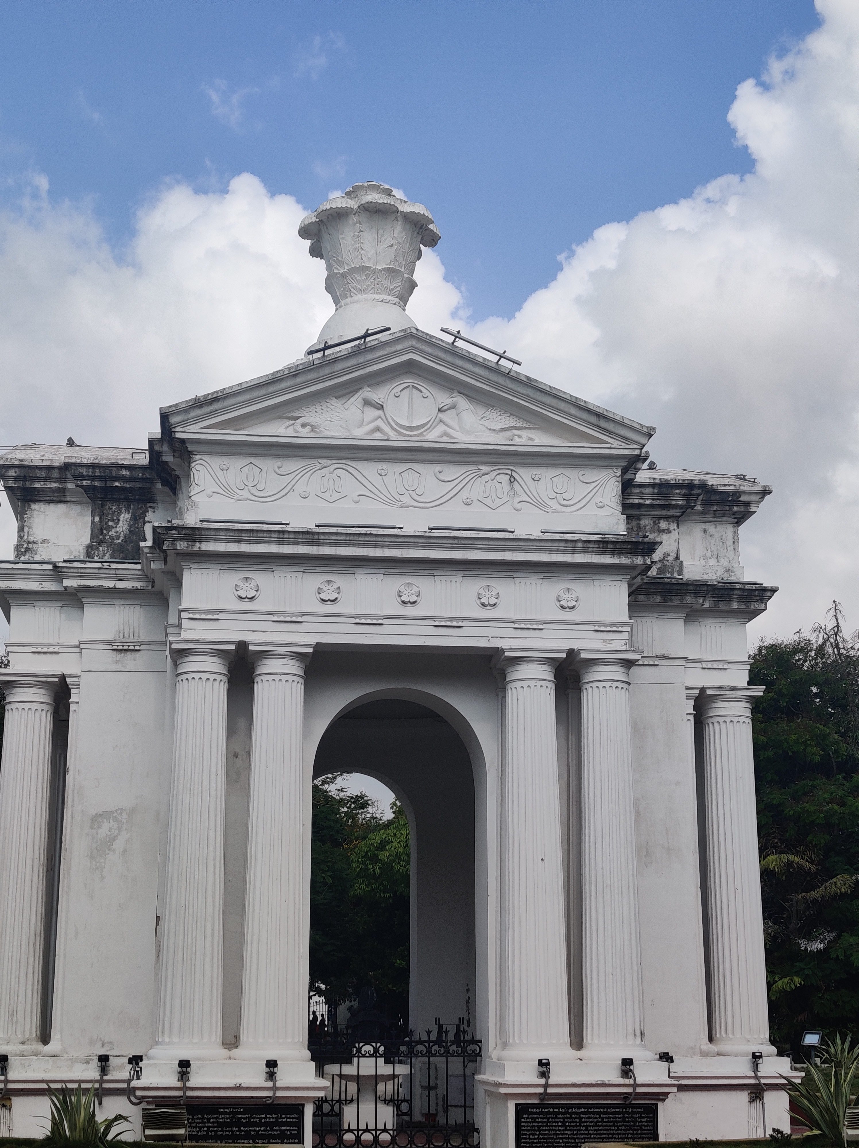 Other intriguing visual examples of the Franco-Tamilian influence are French balconades next to gateways decorated with traditional Hindu themes, or in some locations, French Fleur-de-lis door decorations.