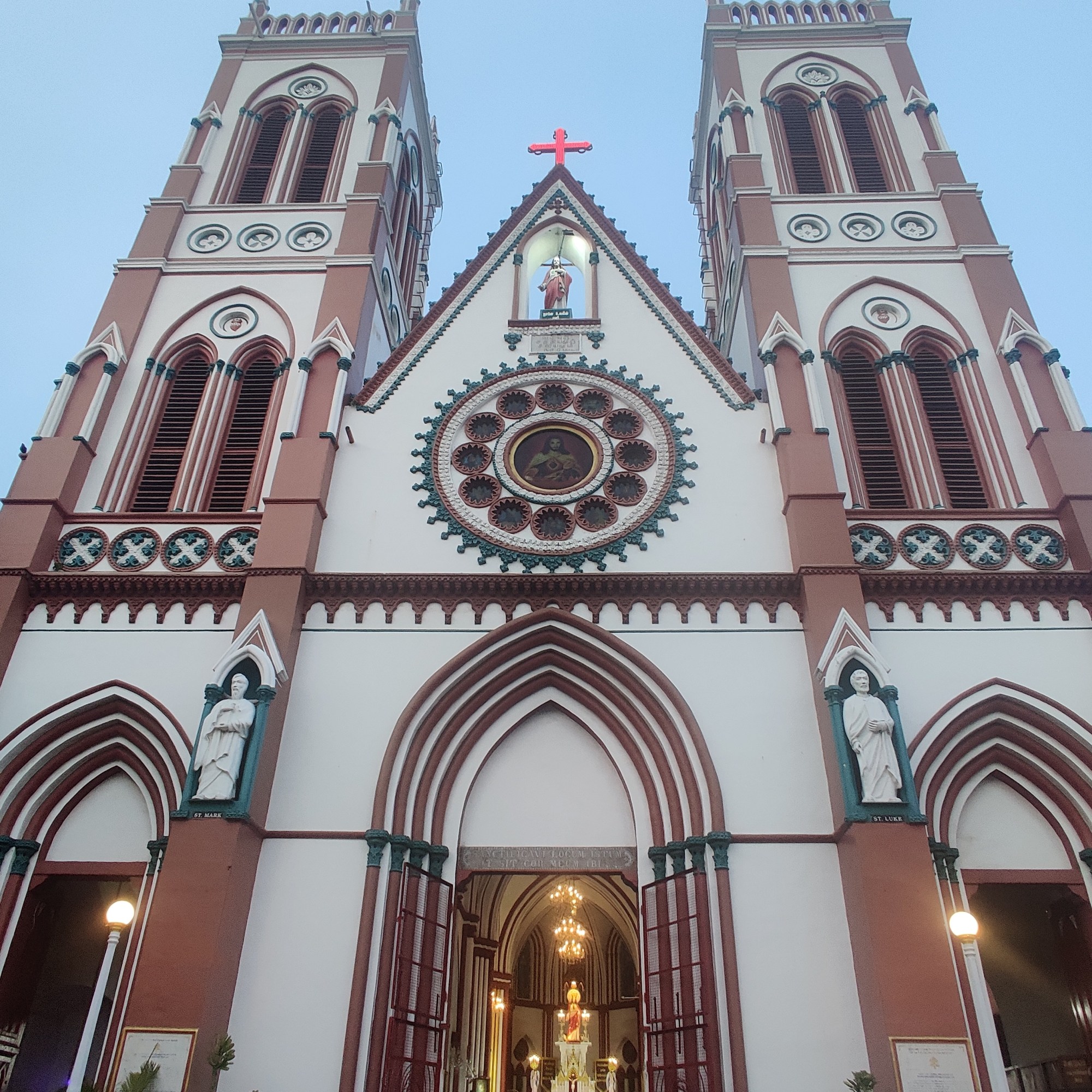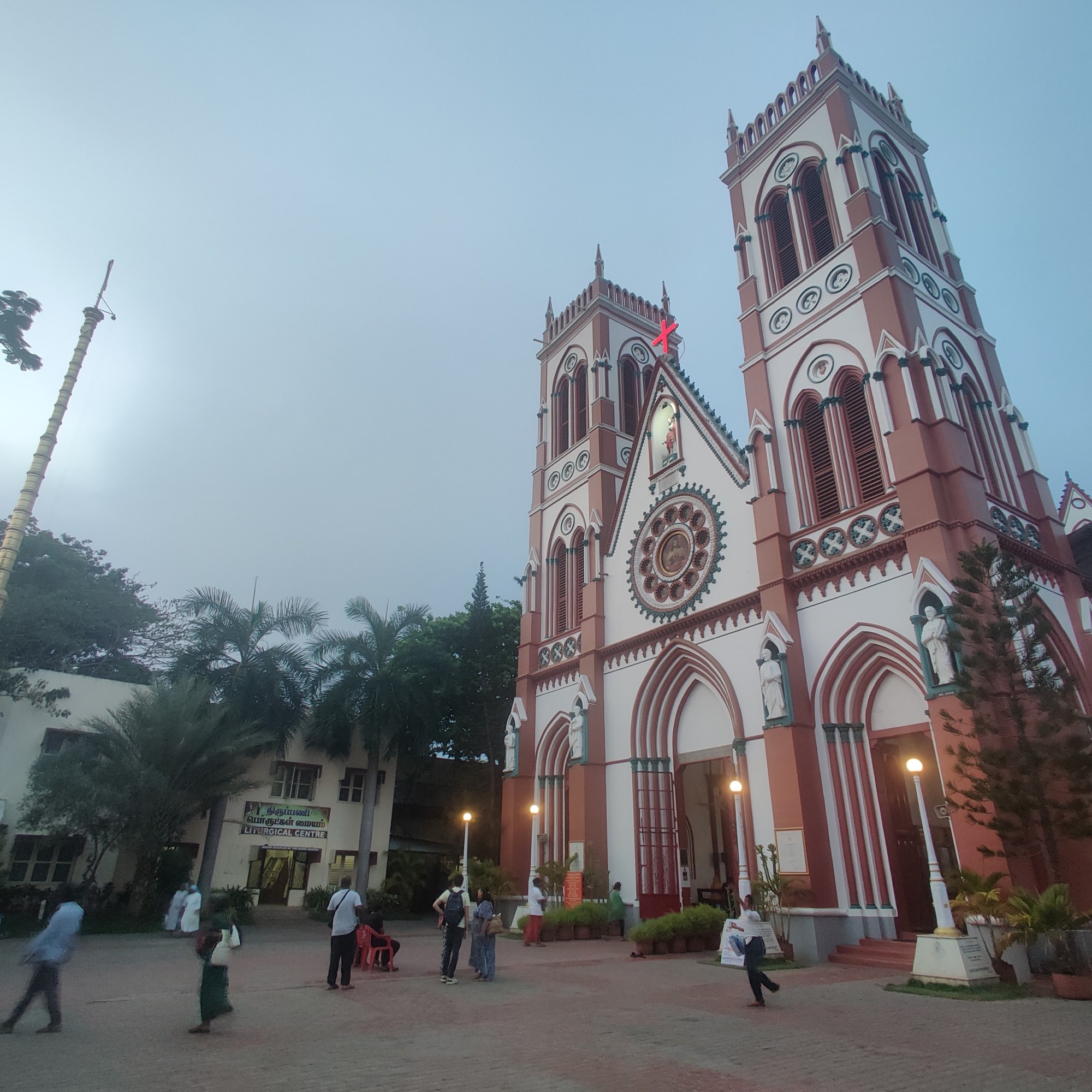 The fourth-oldest church in the union territory of India, Notre Dame Des Anges, is tucked away at the corner of Bussy and Romain Rolland Street. The church, also known as Our Lady of the Angel Church or Kaps Koil, is supposed to have been inspired by the Basilica at Lourdes and Notre-Dame de Paris. The original church was given the name White church because it was painted white on the inside and outside., using a unique mixture of paint, egg, and limestone. In the 1900s, outside color changes took place, and in the 2000s, internal color changes took place. The Capuchin Friars, who established this church, are credited with giving it its other alternative name, Kaps Kovil. Initially, only French individuals were appointed as priests in the church, but in more recent years, Tamil people as well. It is the only church that offers mass in three languages––English, French, and Tamil. Napoleon III (c. 1852–70) had Louis Guerre, an architect, construct the original building in Greco Roman style around 1855. To emphasise its pink colonial façade and rich interiors, details such as square bell towers, a polygonal dome, vaults, arches, vertical rectangular windows, and Corinthian columns were added. It’s thought that France provided the bells for the church. Given that an injury to the wrist insures maximum bleeding from a medical standpoint, it is intriguing that the statue of Jesus inside the chapel depicts his wrist being nailed rather than his palms.