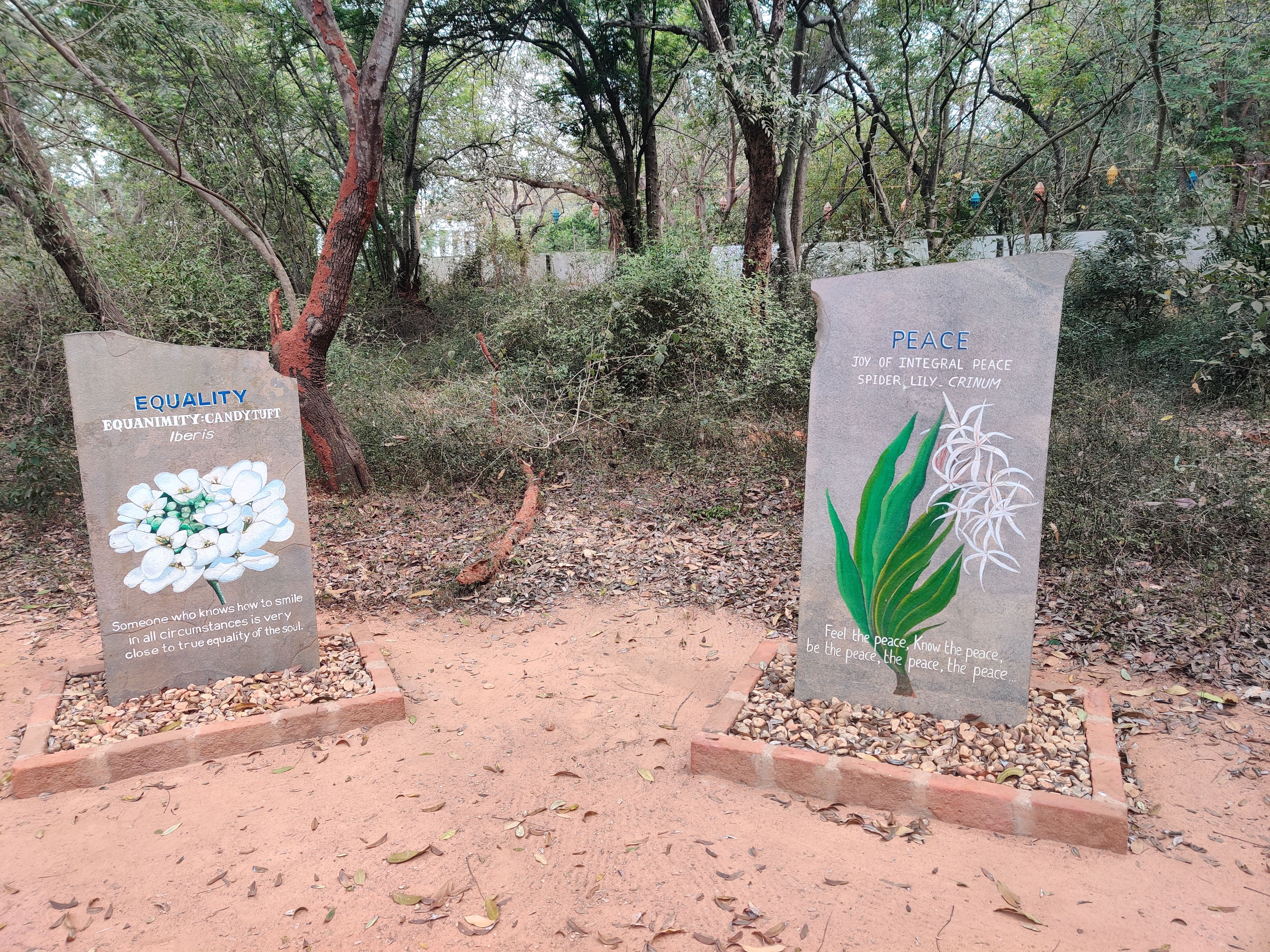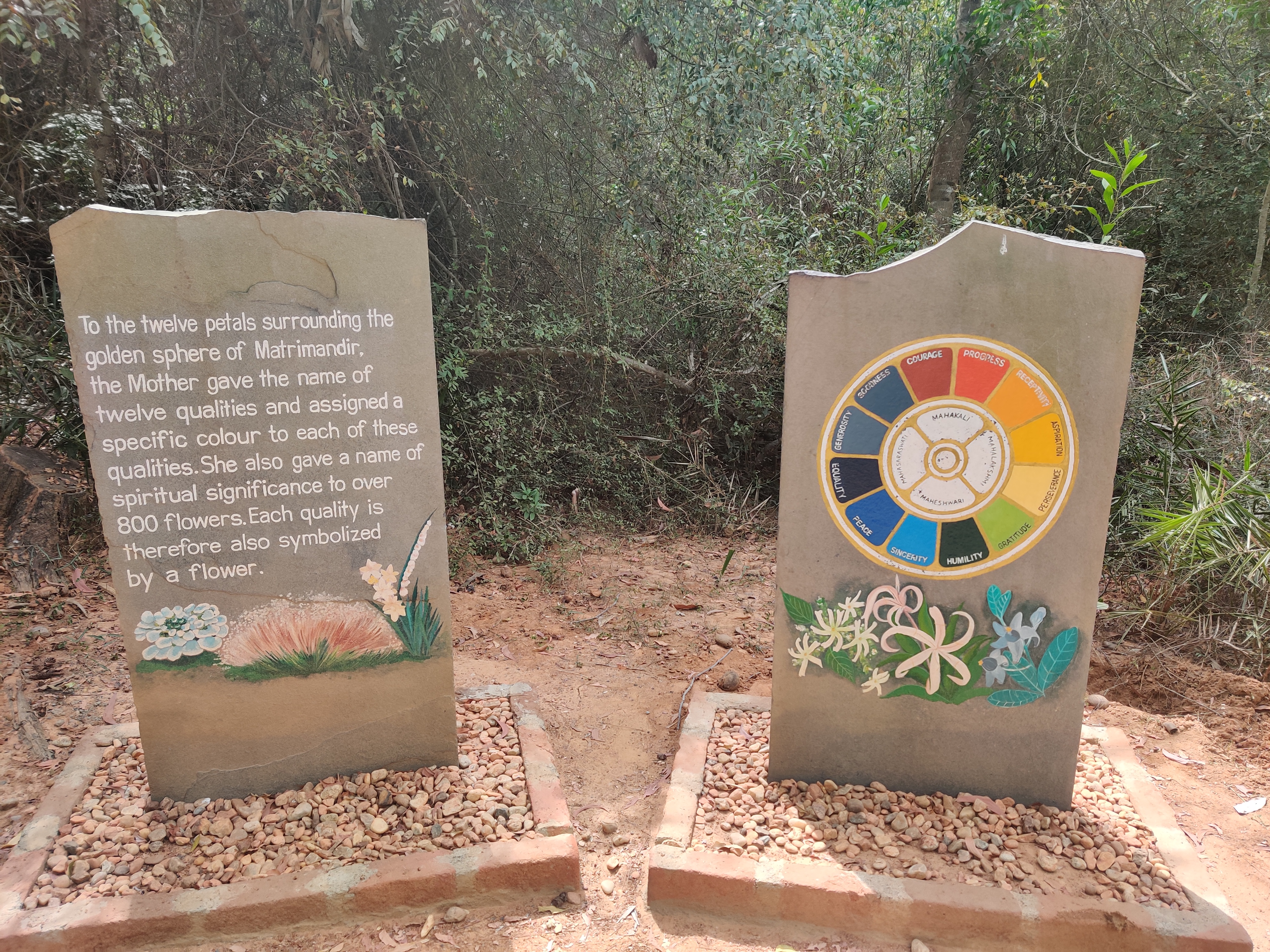 On 28th February 1968 some 5,000 people assembled near the banyan tree at the centre of the future township for an inauguration ceremony attended by representatives of 124 nations, including all the States of India. The representatives brought with them some soil from their homeland, to be mixed in a white marble- clad, lotus-shaped urn, now sited at the focal point of the Amphitheatre. At the same time the Mother gave Auroville its 4-point Charter.