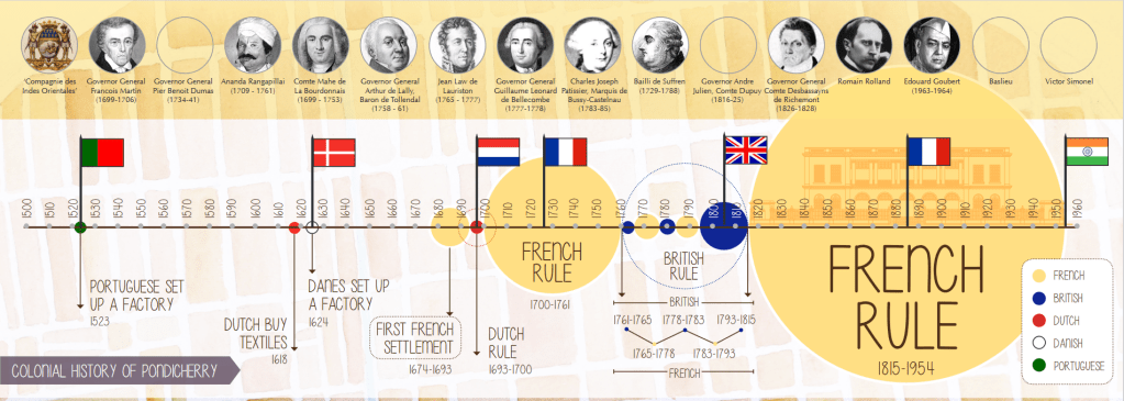 History is important – it holds within it, the time of the pioneer. In a memoir dated December 1776, Louis Laurent de Federbe, comte de Modave, wrote about the geographical area that the French called as ‘les grandes Indes’. His observation that the French have “become nothing” in the global stage of colonialism, is an exaggeration of a kernel of truth. The French interest in Indian subcontinent can be documented in three words/phrases: trade links, ongoing control of the trading posts, and European colonial rivalry. In common with its European competitors (the English, the Portuguese, the Dutch, the Danes, and the Swedes), France’s encounter with India began through trade. And despite the whining intonation in various memoirs, the French colonial rule lasted for 264 years as compared to the 190 years of British administration.