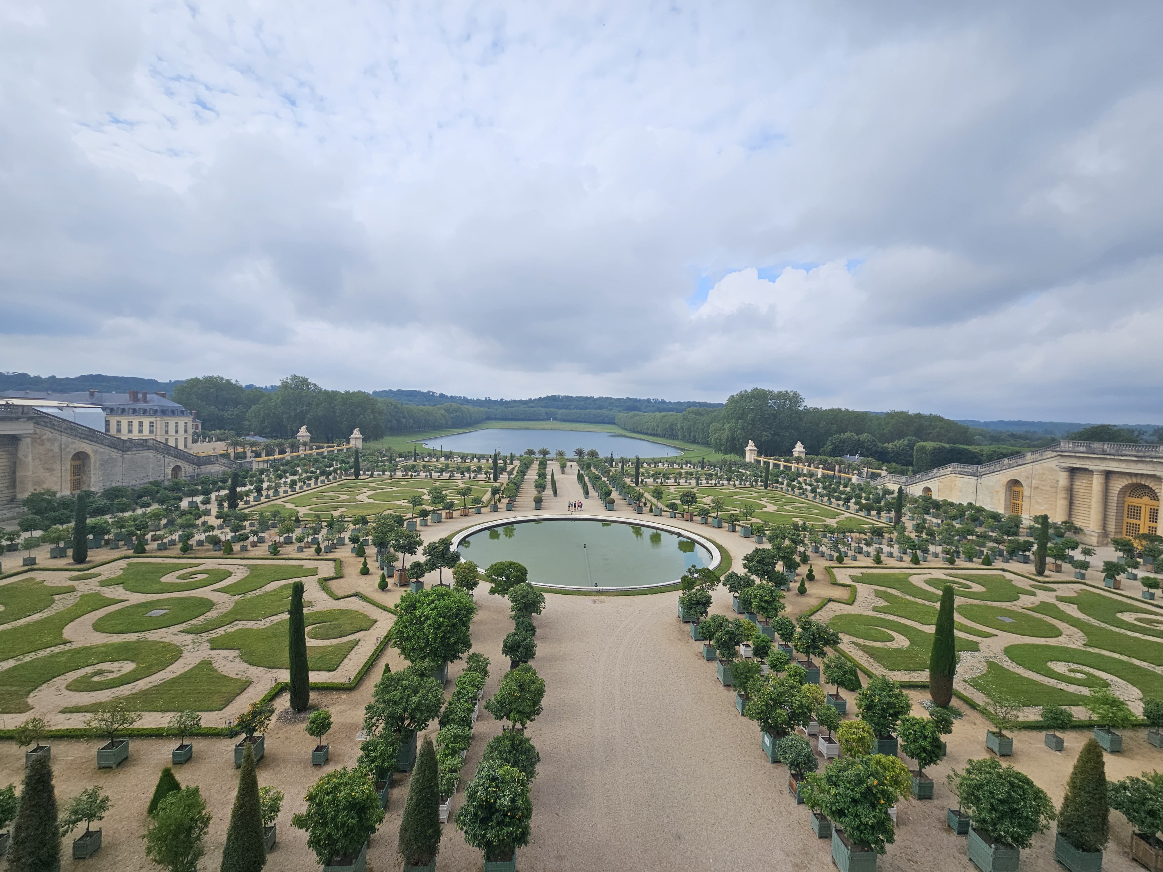 The Versailles palace had extensive gardens covering 3 square miles, featuring symmetrical formal gardens, sculptures, ponds, a canal, and numerous fountains.In fact, Versailles is often referred to as the largest open-air sculpture museum in the world, boasting 386 works of art made from bronze, marble, and lead, with 221 of these sculptures adorning its magnificent gardens. To maintain the design, the garden needed to be replanted approximately once every 100 years, a practice carried out by Louis XVI and Napoleon III. André Le Nôtre organized the gardens around two axes: north-south and east-west, starting at the Neptune Fountain and continuing to the Orangery and Lake of the Swiss Guard. The Grande Perspective, a symmetry axis, bisects the gardens, showcasing the French formal garden’s optical effects. The idea of the French Garden was to showcase to the world the French of taming of chaos into civility and manners – a symbolism that reiterates the Sun King’s absolute narcissism.