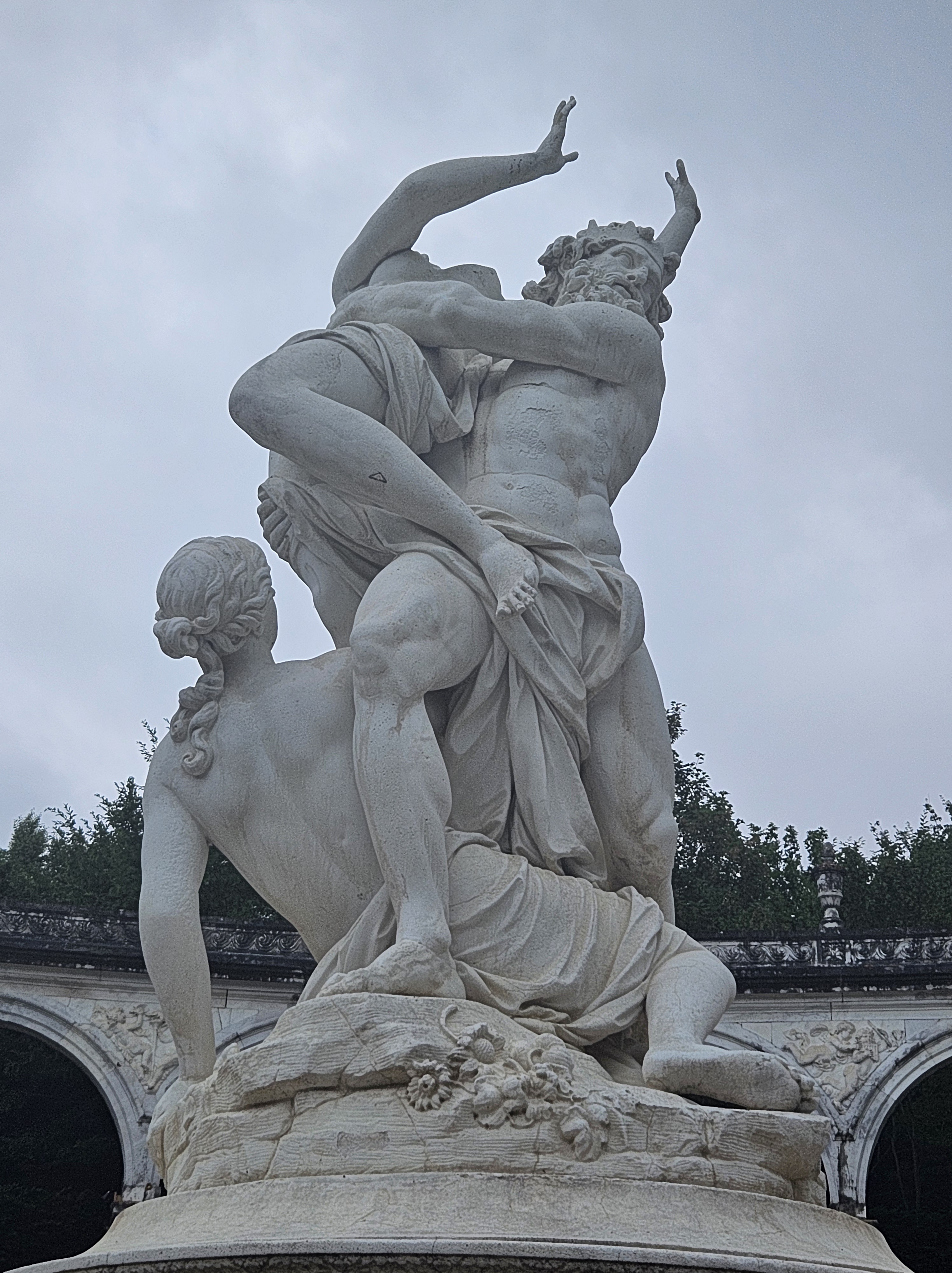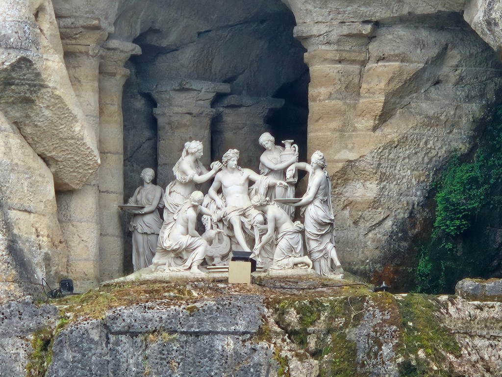 A water feature already existed here in 1636, during the reign of Louis XIII, and was known as the Lake of the Swans. Louis XIV later added the spectacular and famous work in gilded lead of Apollo riding his chariot (last image in the gallery). This piece, built by Tuby on a design by Le Brun, is based on the legend of Apollo, the Sun god and the King’s icon. It features the god bursting forth from the water in anticipation of his daily flight above the earth. Tuby made this monumental group in the Gobelins manufacture between 1668 and 1670, when it was transported to Versailles and put in place and gilded the following year. At the time of my visit to the garden, the Apollo’s fountain was undergoing maintenance because of the upcoming Paris Olympics 2024.