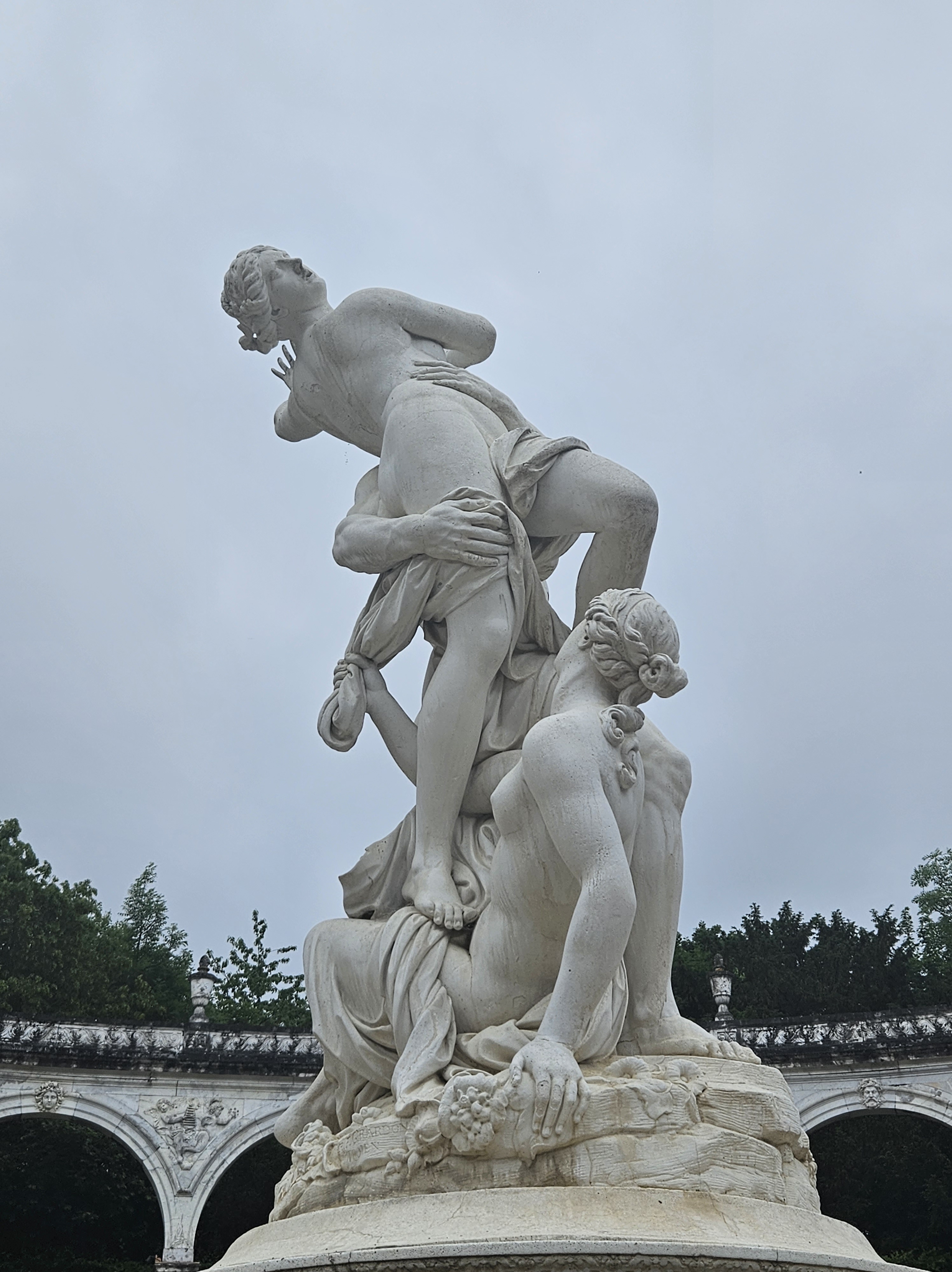 Commenced in 1685 by Jules Hardouin-Mansart, the Colonnade Grove replaced the Spring Grove created by Le Nôtre in 1679. In the centre, the original pool was replaced in 1696 by the group sculpture by Girardon showing The Abduction of Persephone by Hades.