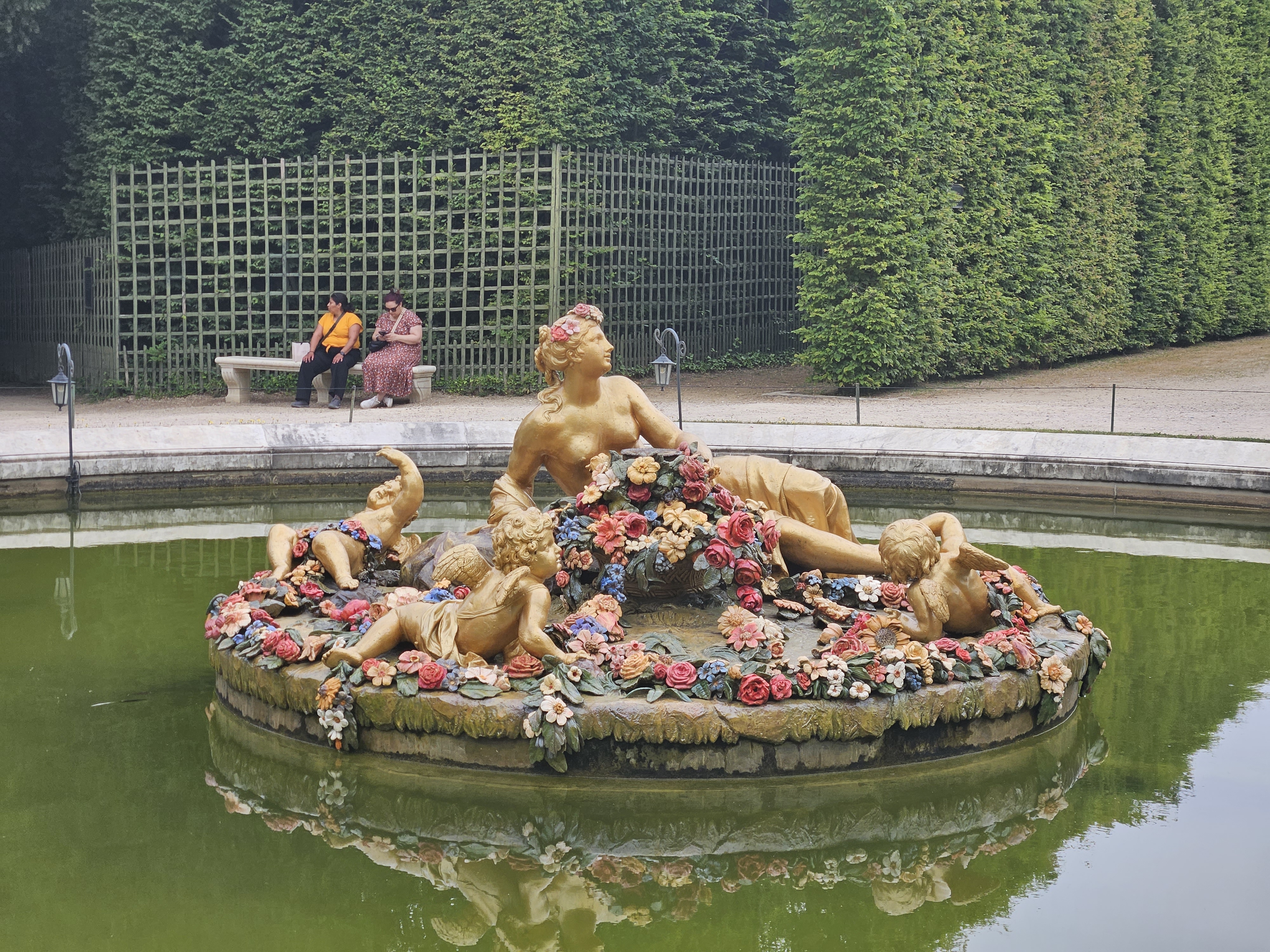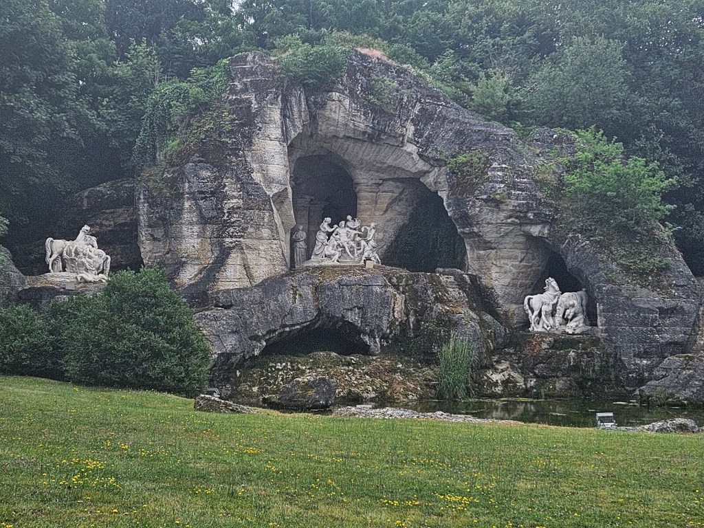 Apollo’s Baths Grove was probably my favorite, especially considering the famous Apollo’s fountain was out of commission. It dates from the reign of Louis XVI and was laid out between 1778 and 1781. In the same location, Le Nôtre initially installed the picturesque Marsh Grove in 1670, its principal decoration consisting of a pool bordered by lifelike painted metal reeds and adorned in its centre by a metal tree with a fountain springing from it. In 1705 this fantastical grove was eliminated to make room for the groups Apollo Served by Nymphs and Horses of the Sun, which Jules Hardouin-Mansart placed under gilded lead canopies and on pedestals surrounded by a pool.