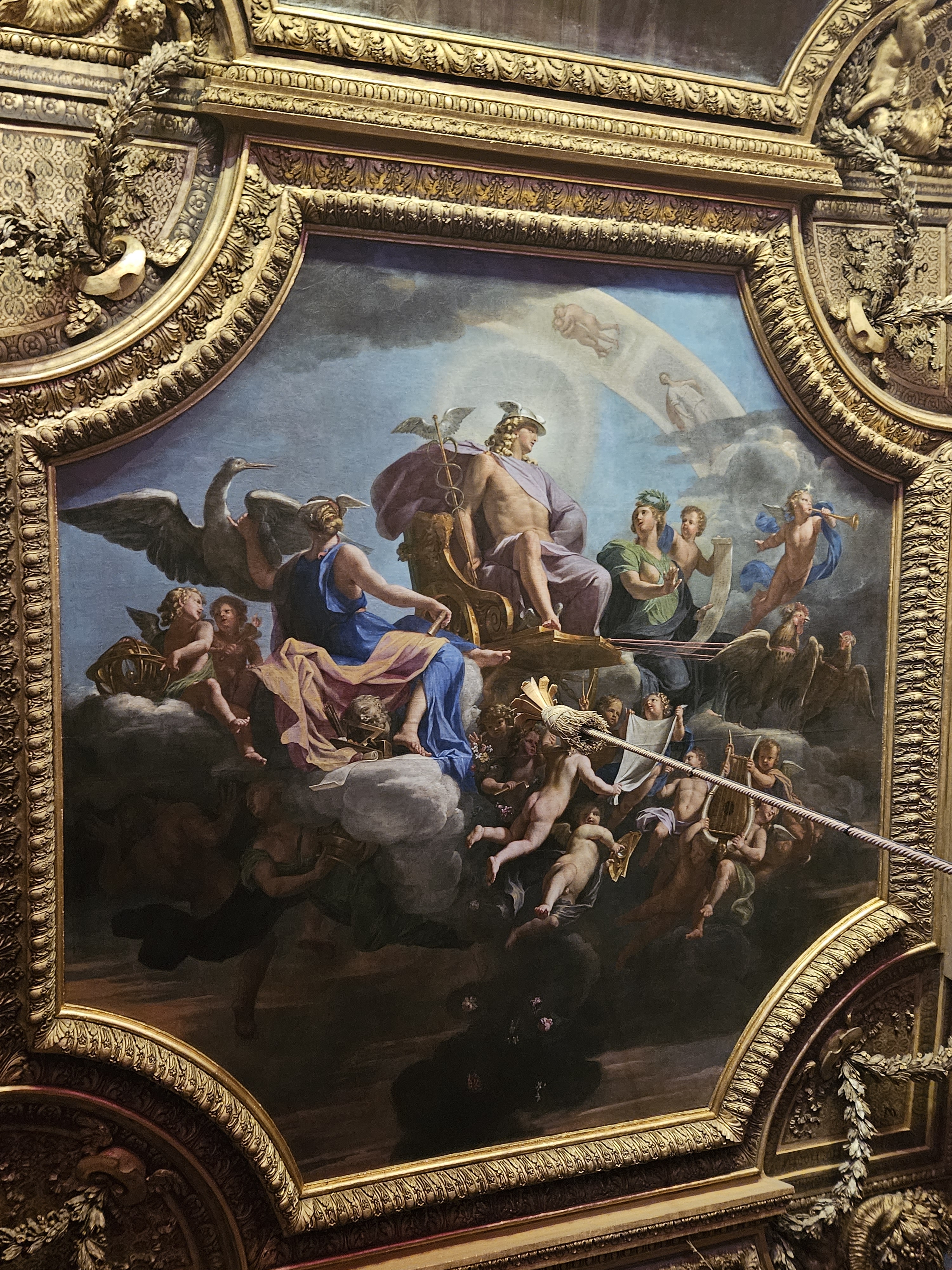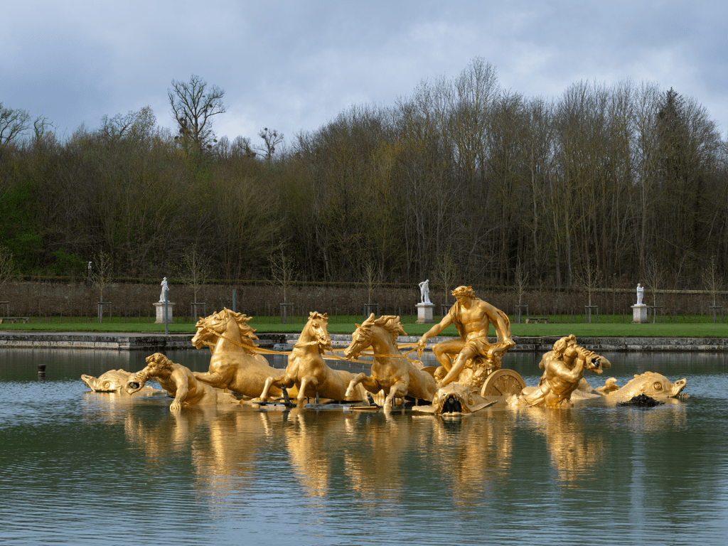 Louis XIV adopted the sun as his emblem, drawing parallels to Apollo, the Greek and Roman sun god, to cultivate an image of himself as the omniscient and infallible “Roi-Soleil” or Sun King. Like Apollo, Louis XIV saw himself as the source of light and life for his kingdom. He even took on the role of Apollo in a royal ballet, underscoring his self-image as a divine being. Throughout the palace, you’ll find representations of the sun god, from laurel wreaths to lyres and tripods. In every way, Louis XIV’s reign was a carefully crafted spectacle of power and divinity, with Versailles as its grand stage.
