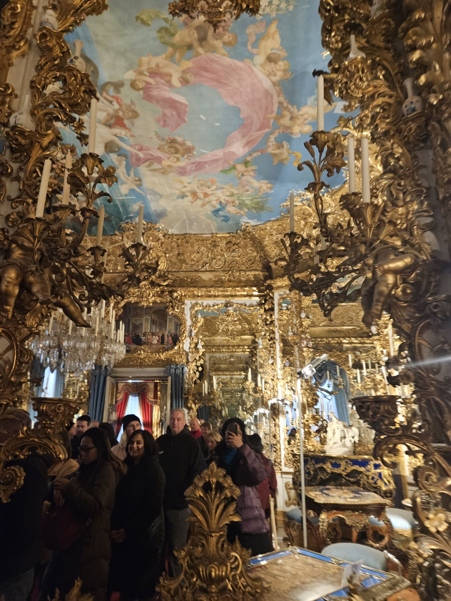 Mirror might be an everyday object to you and I, but it clearly was a far more opulent symbol in 17th century Europe. The abundance of mirrors, a luxury item at the time, demonstrated France’s ability to rival the Venetian monopoly on mirror manufacturing. Louis XIV even enticed Venetian artisans to France to produce these mirrors, showcasing the nation’s burgeoning economic power and craftsmanship. It was built to replace a large terrace that connected the King’s apartments to the Queens’s.